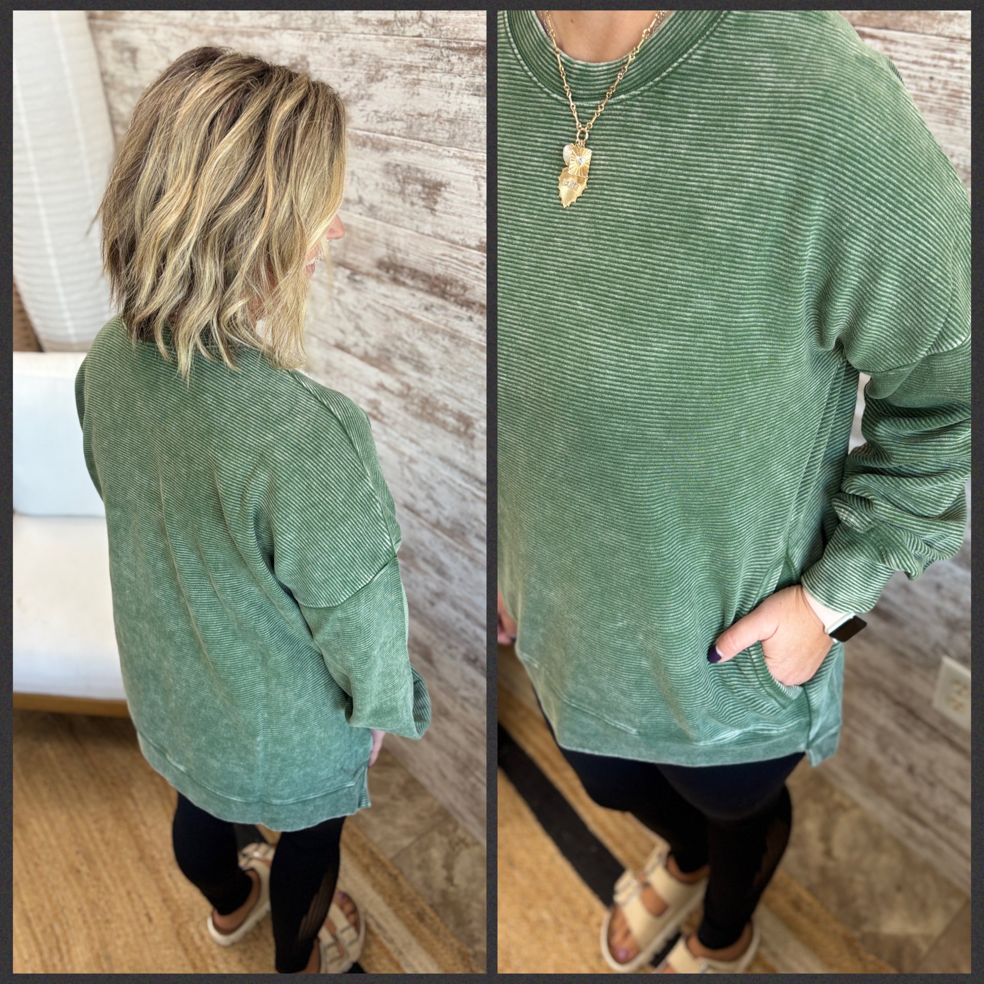 Acid Wash Double Ribbed Pullover ~ 2 Colors