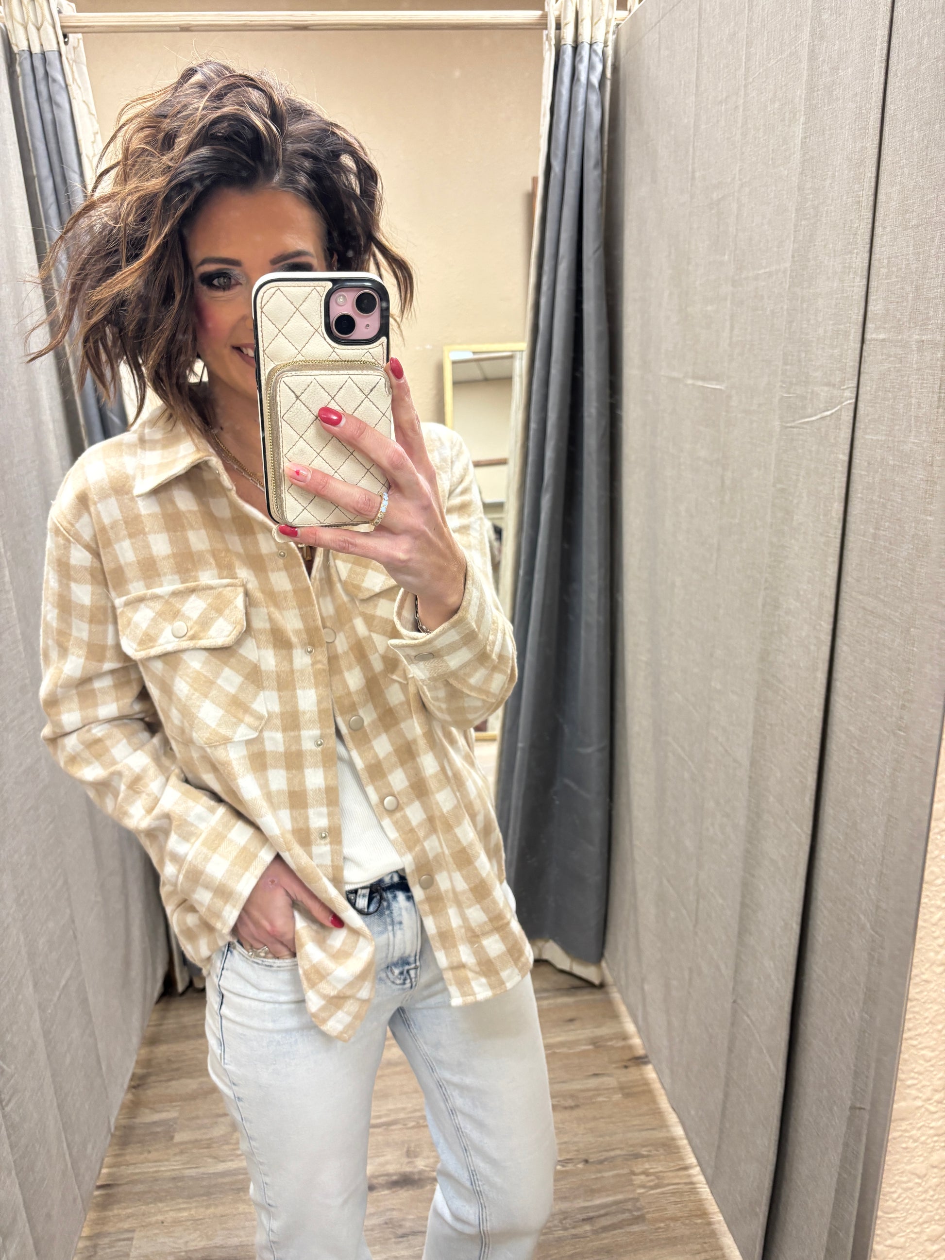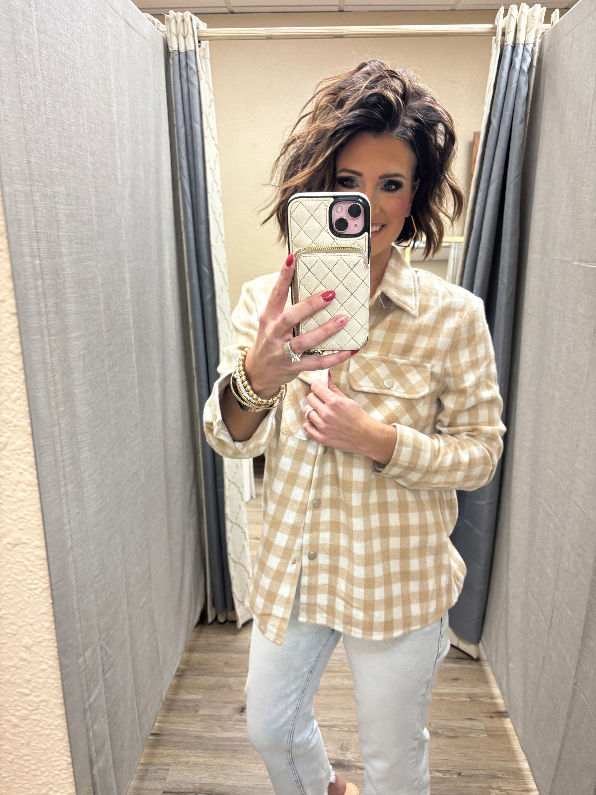 Beige Gingham Shirt Jacket