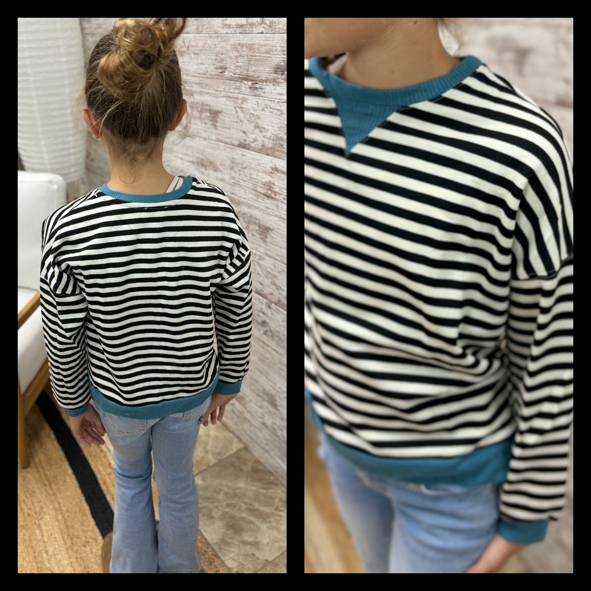 Girls Black/Teal Stripe Knit Top