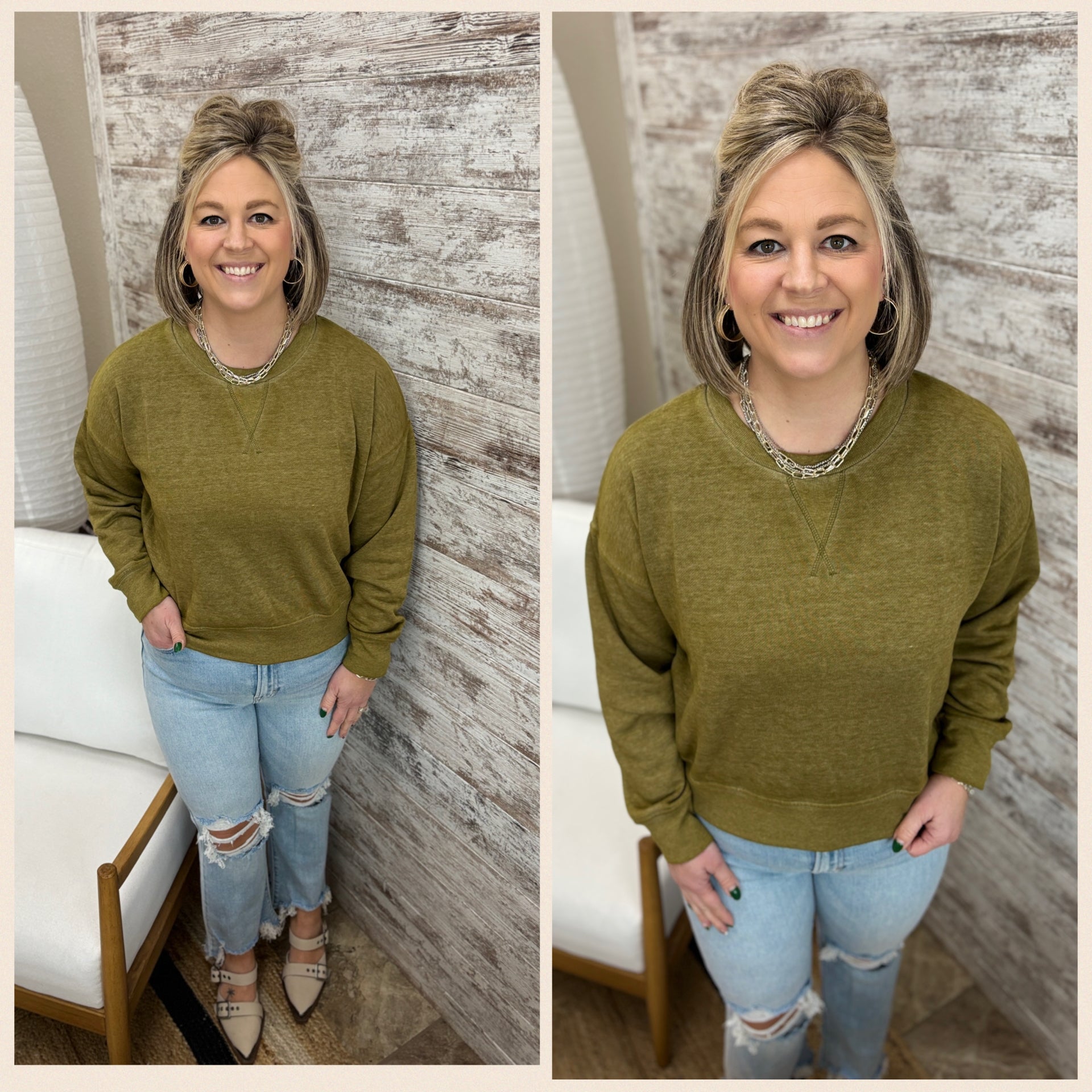***Kristen (5’6”, normally wears a small) is wearing a Small.