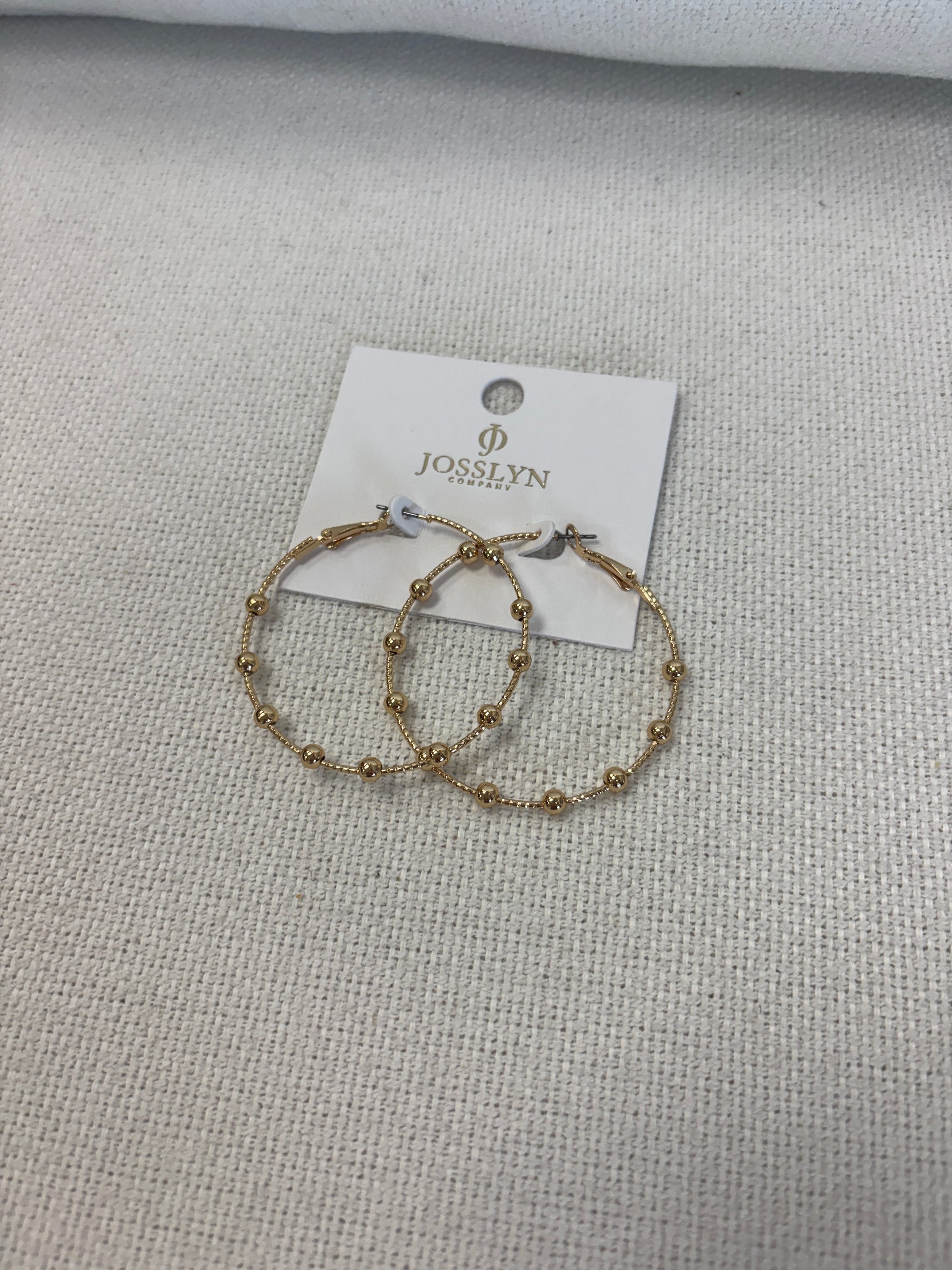 Timeless gold-tone hoops with evenly spaced, polished ball beads for subtle texture and shine. Lightweight and versatile, these station-style earrings elevate everyday looks with effortless, classic sophistication. Product details: width: 2" length: 2" earring back: Titanium post metal finish: gold Plating product: Lead & Nickel Compliant durability: Double E-coating