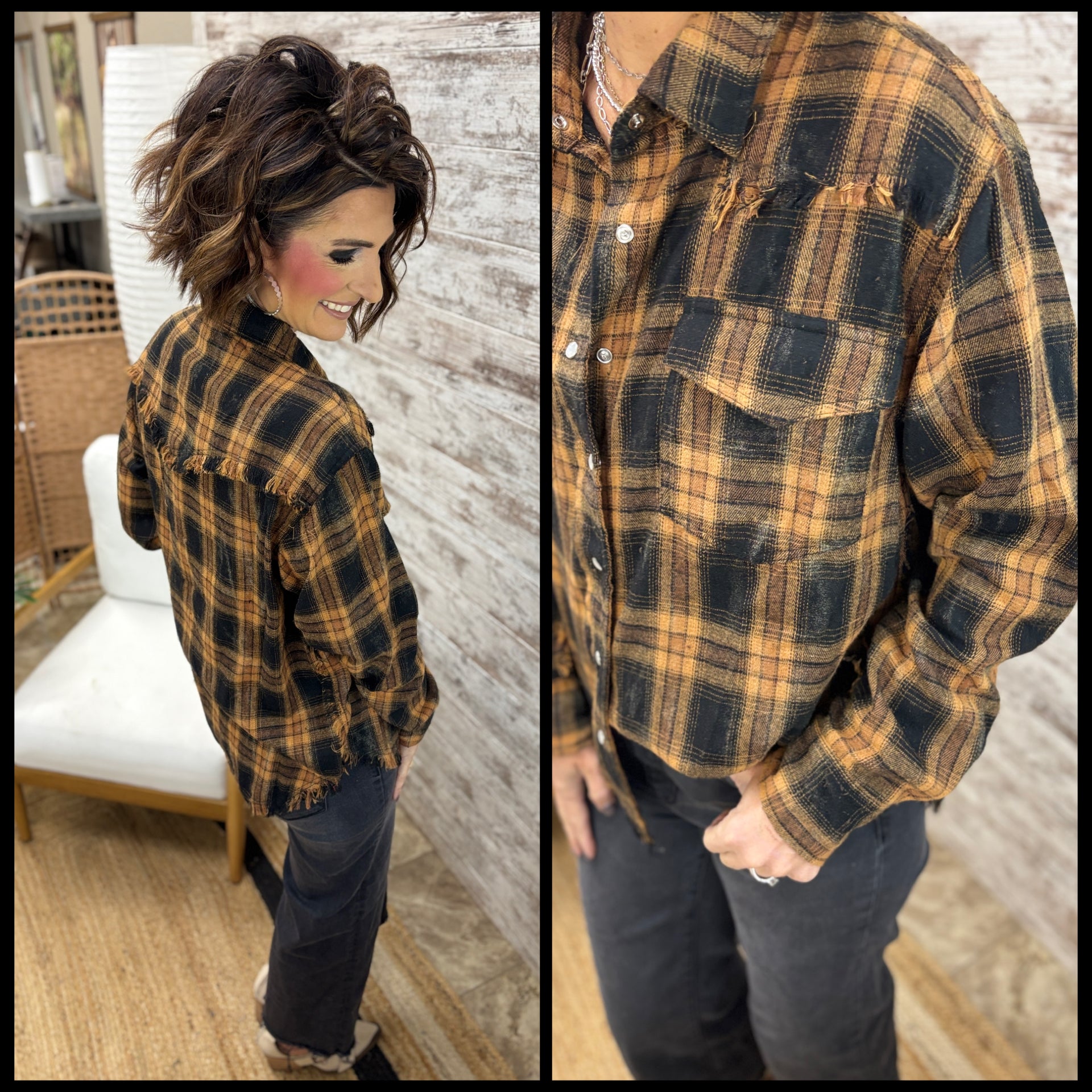 Distresssed Plaid Button Down Shirt ~ 2 Colors