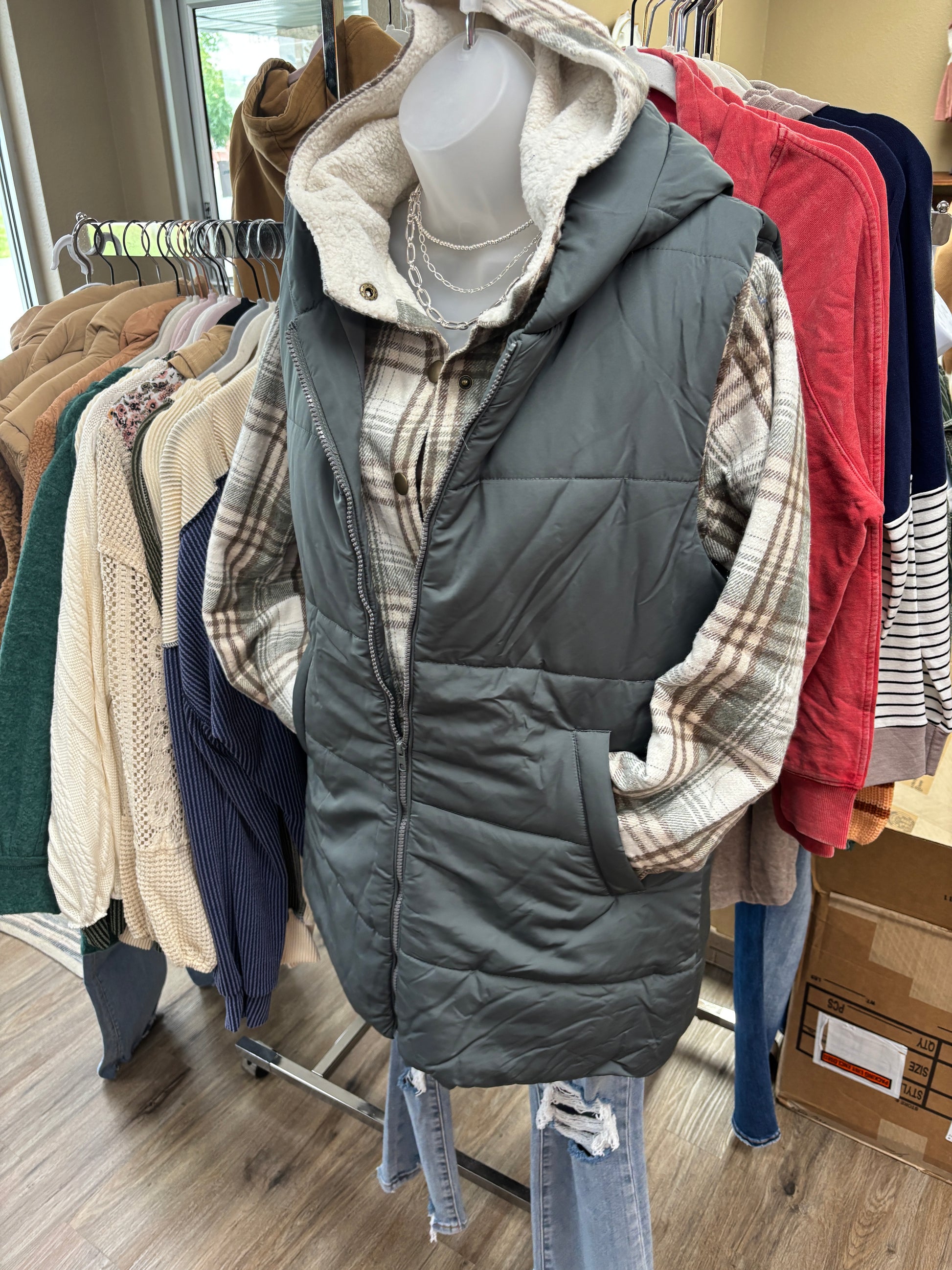 Dk Green Zip Front Tunic Puffer Vest
