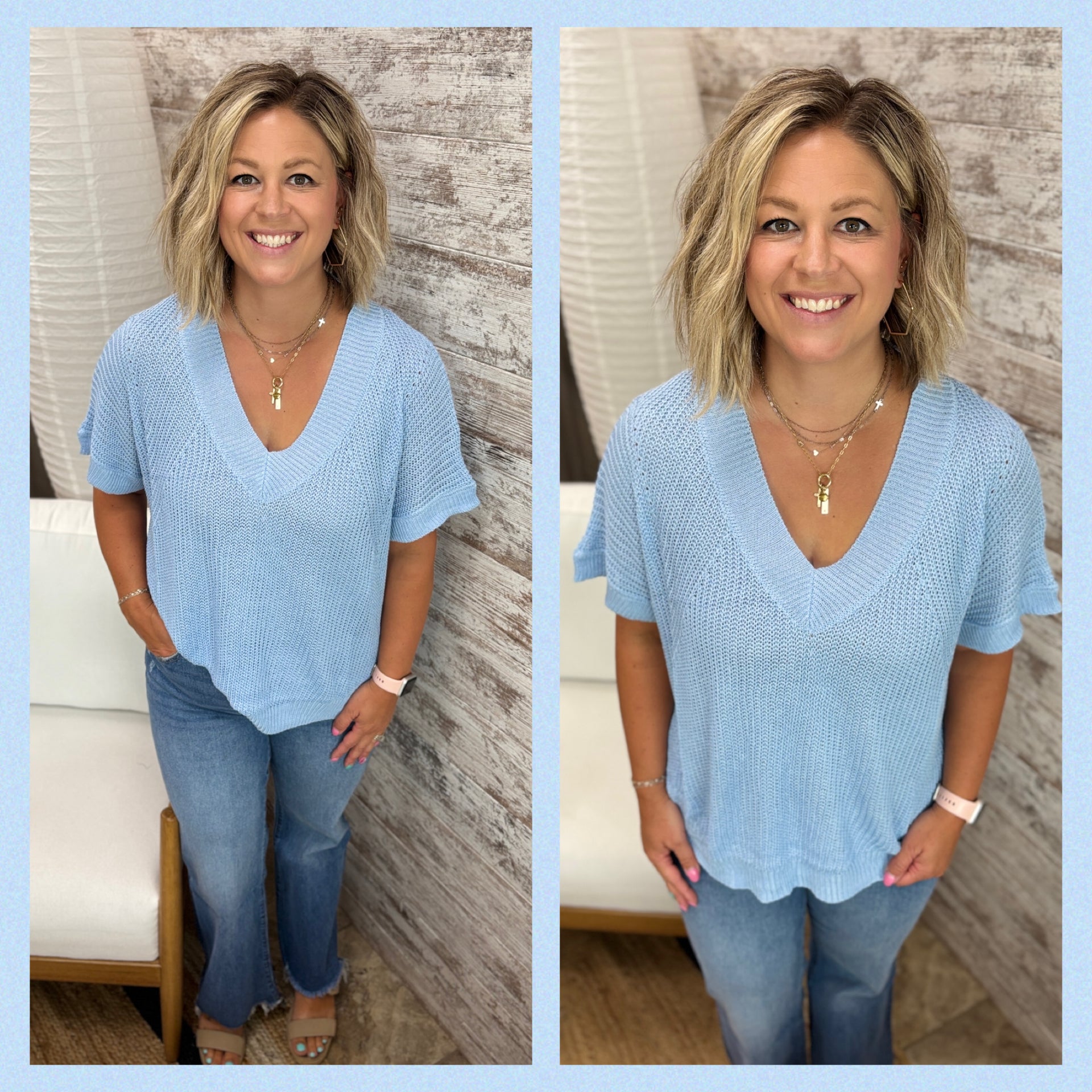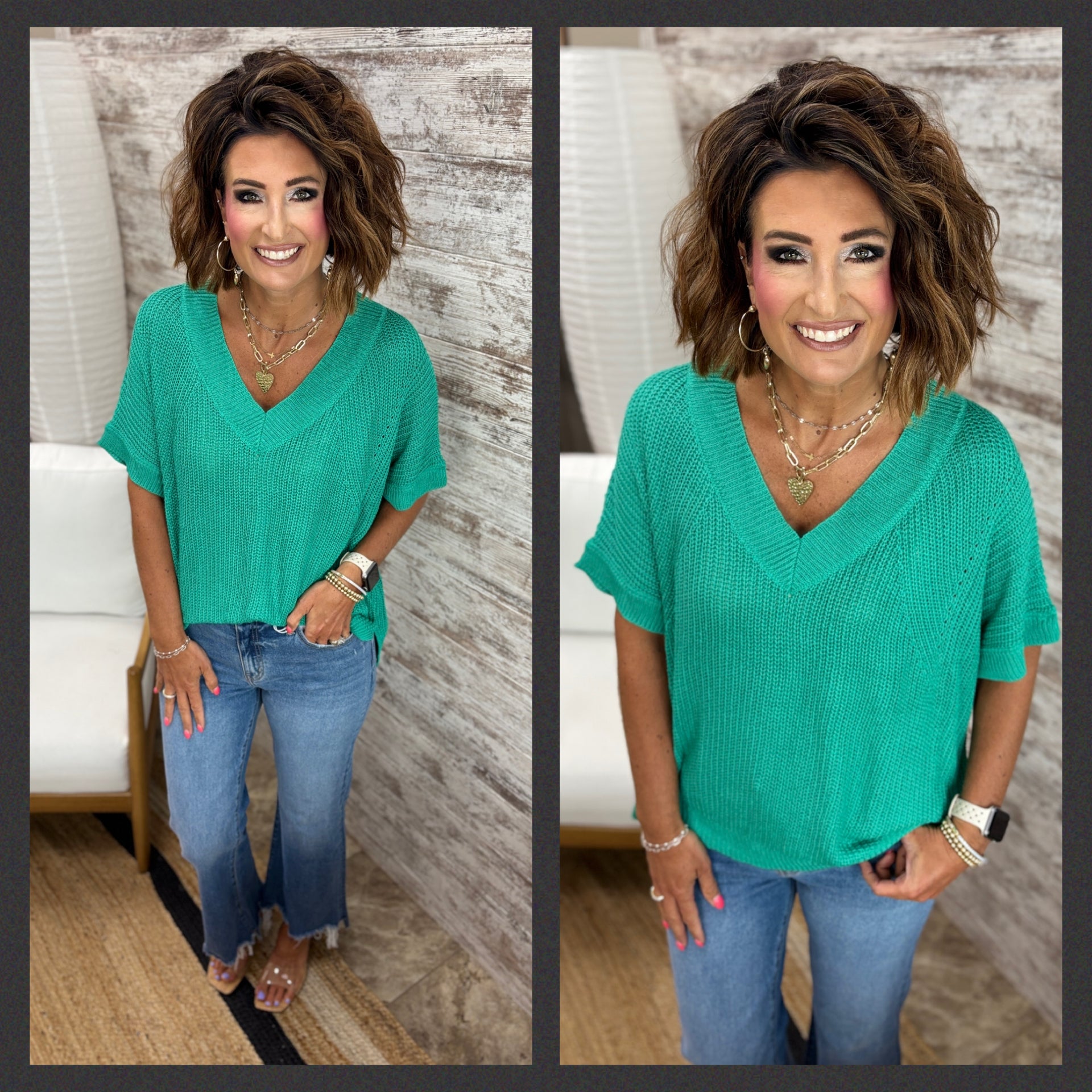 SHORT DOLMAN SLEEVE LIGHTWEIGHT V-NECK SWEATER SUMMER TOP