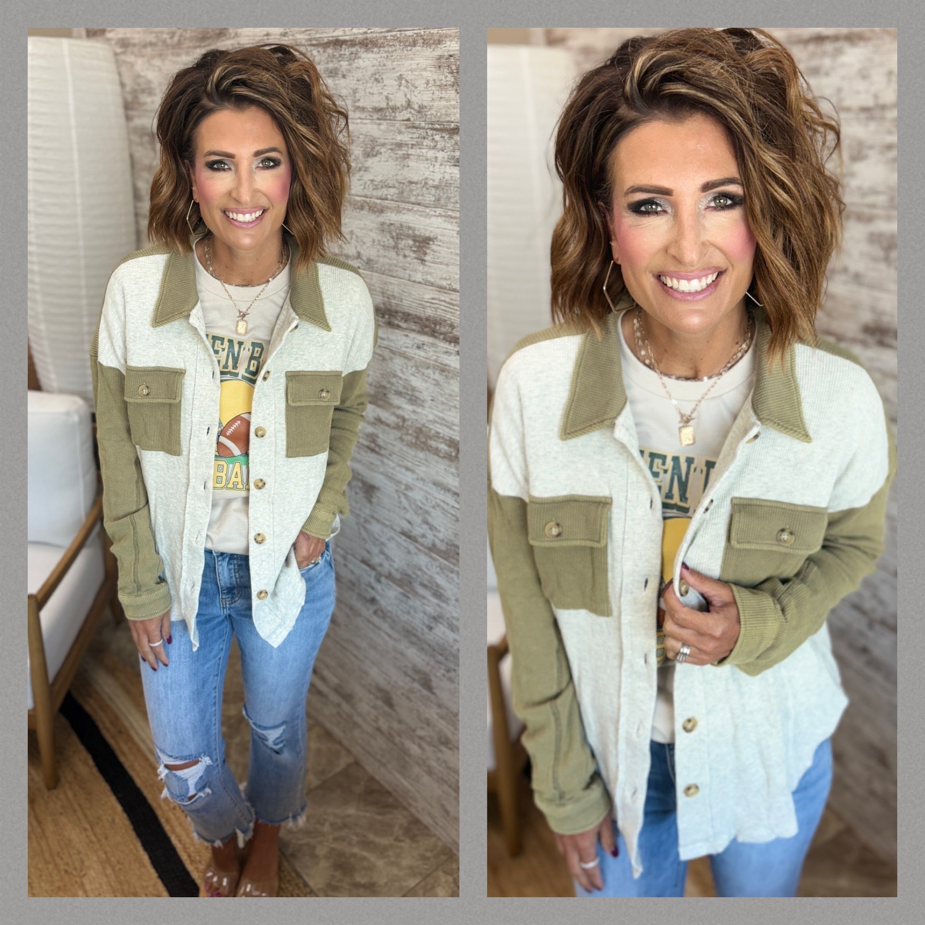 Dusty Olive Thermal Shacket