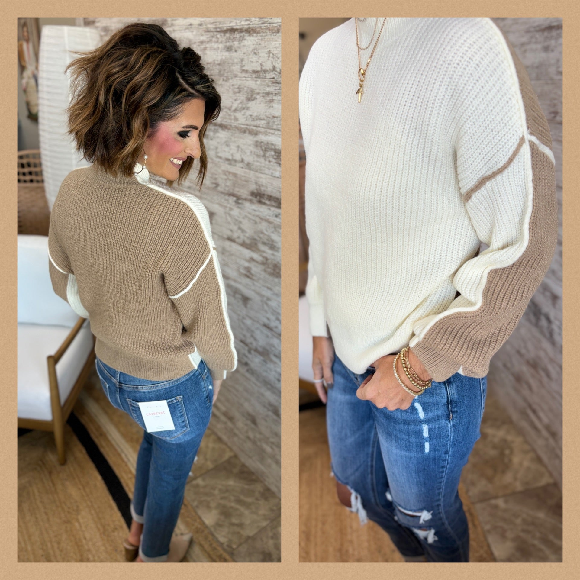 Exposed Seam Colorblock Sweater ~ 2 Colors