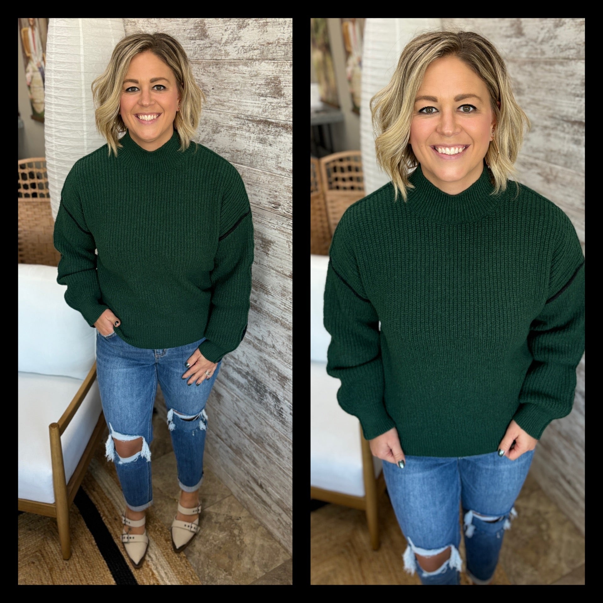 ***Kelly (5’4”, normally wears a medium) is wearing a medium.