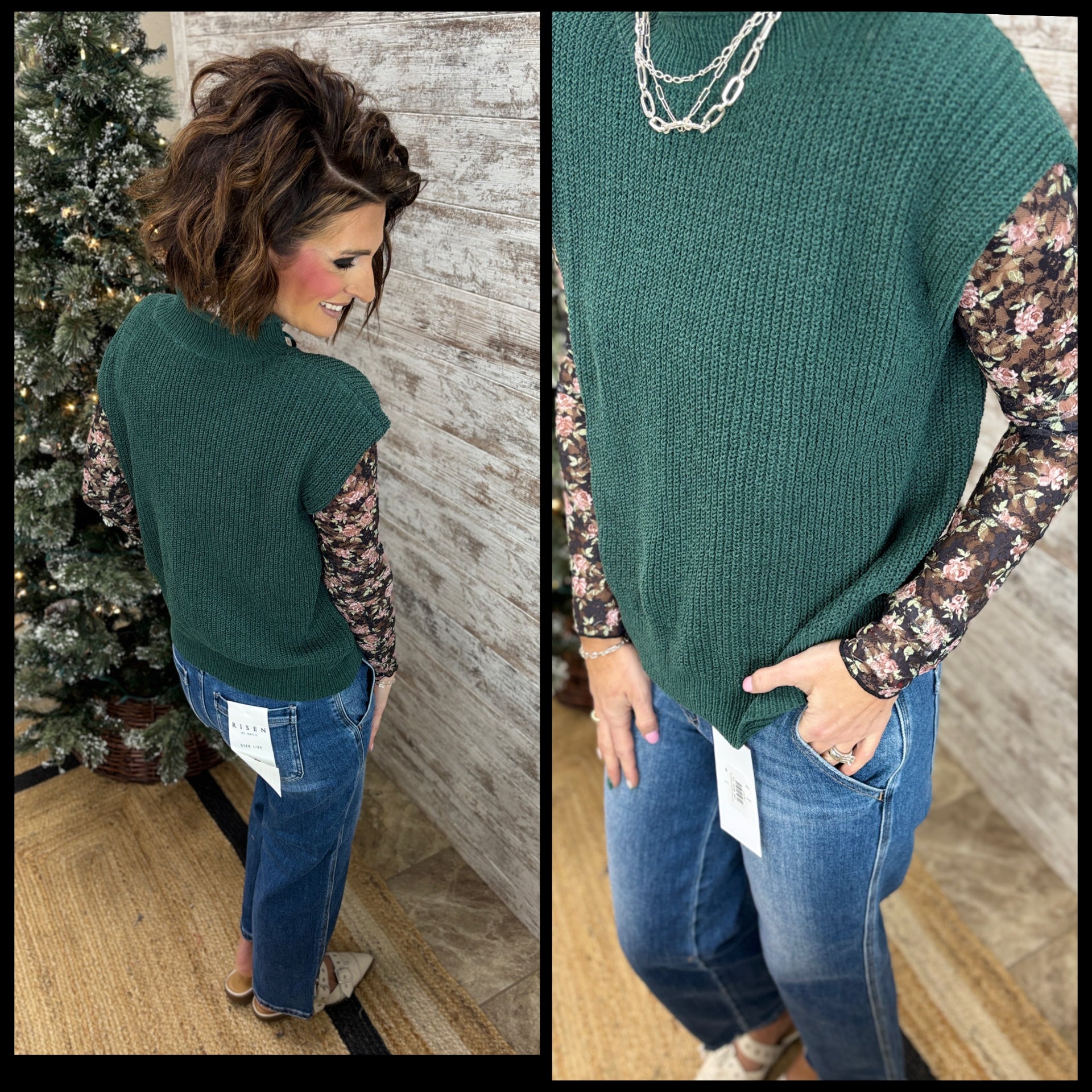 - Oversized Soft Knit Sweater Vest Top - Round Neck - Ribbed Hem 100% Polyester