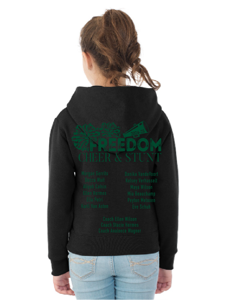 Freedom Cheer and Stunt Black JERZEES NuBlend Youth Hooded Sweatshirt~ Youth