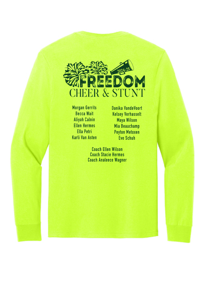 Freedom Cheer and Stunt Safety Green JERZEES DRI-POWER Youth Long Sleeve ~ Youth