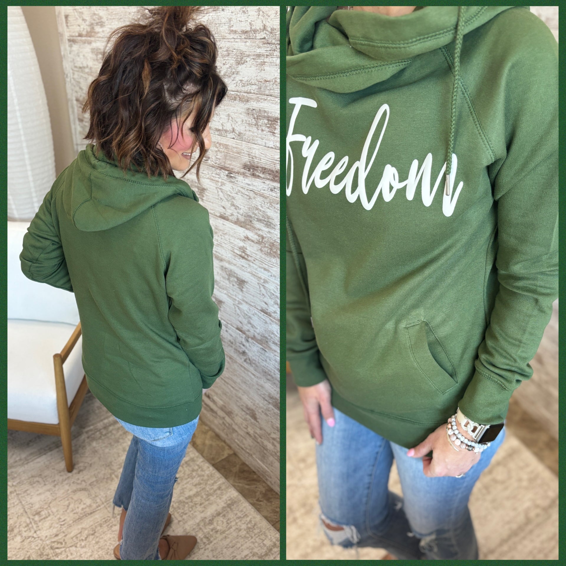 Freedom Cursive Print Enza Green Cowl Hoodie ~ Ladies