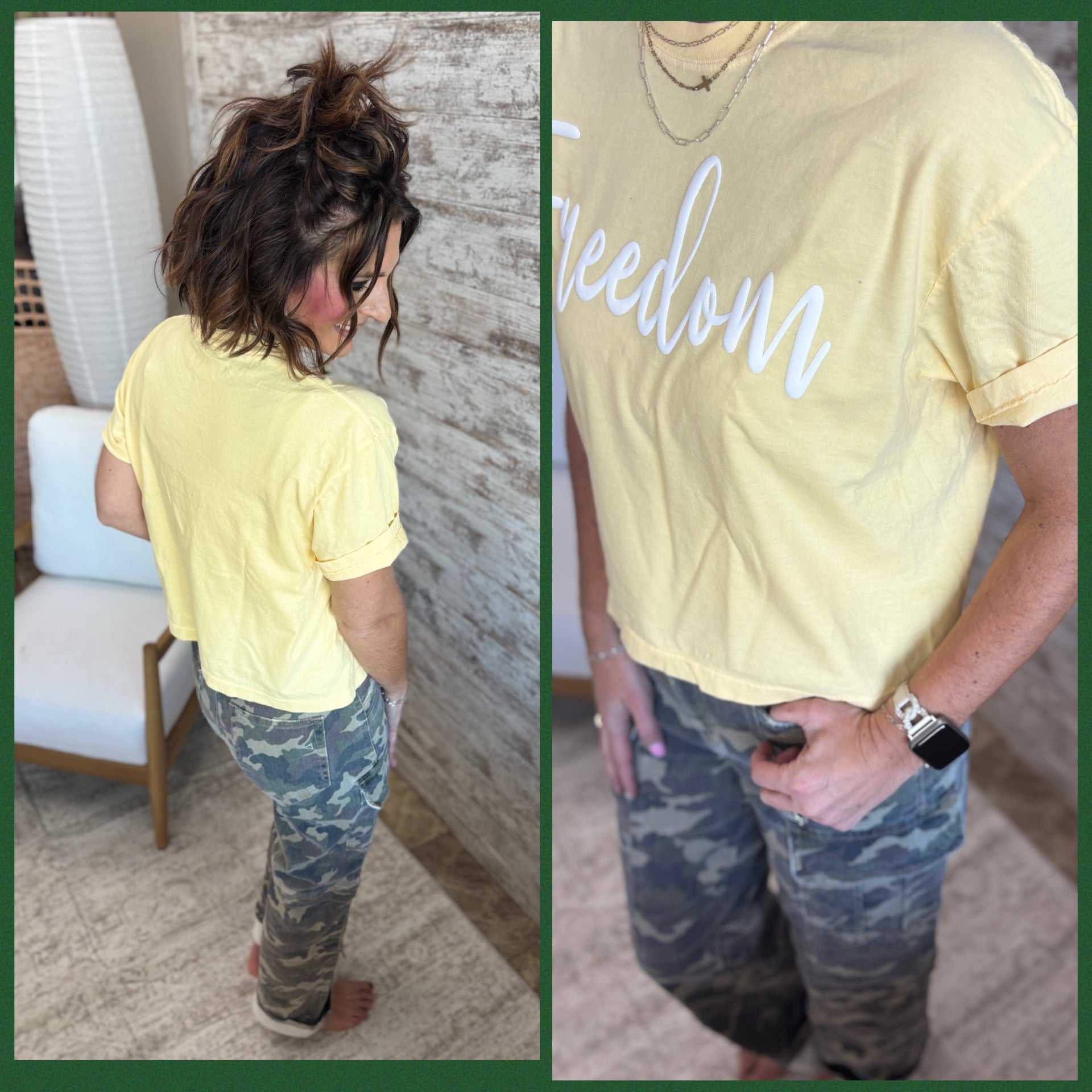 Freedom Cursive Puff Print Comfort Colors Butter Boxy Tee~ Ladies