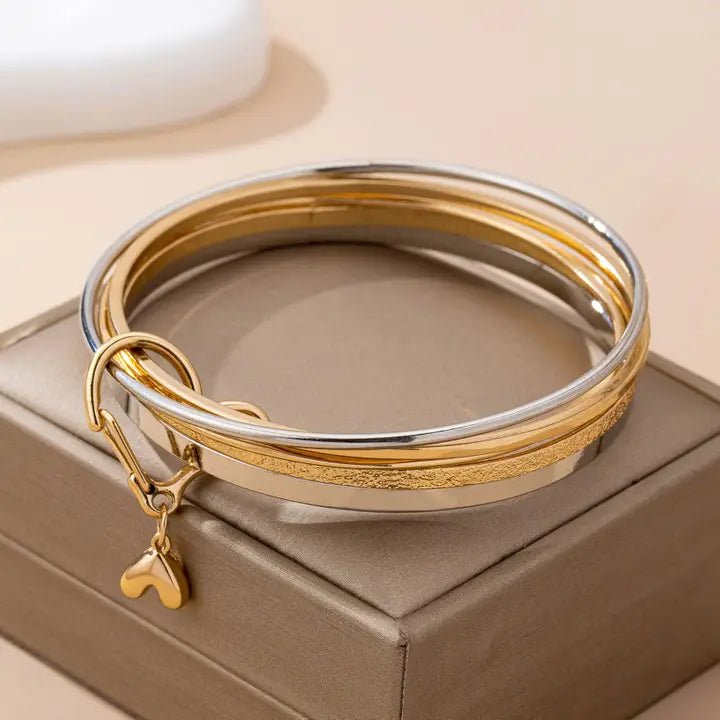 Gold Silver Heart Linked Multi Bangle Set Bracelet