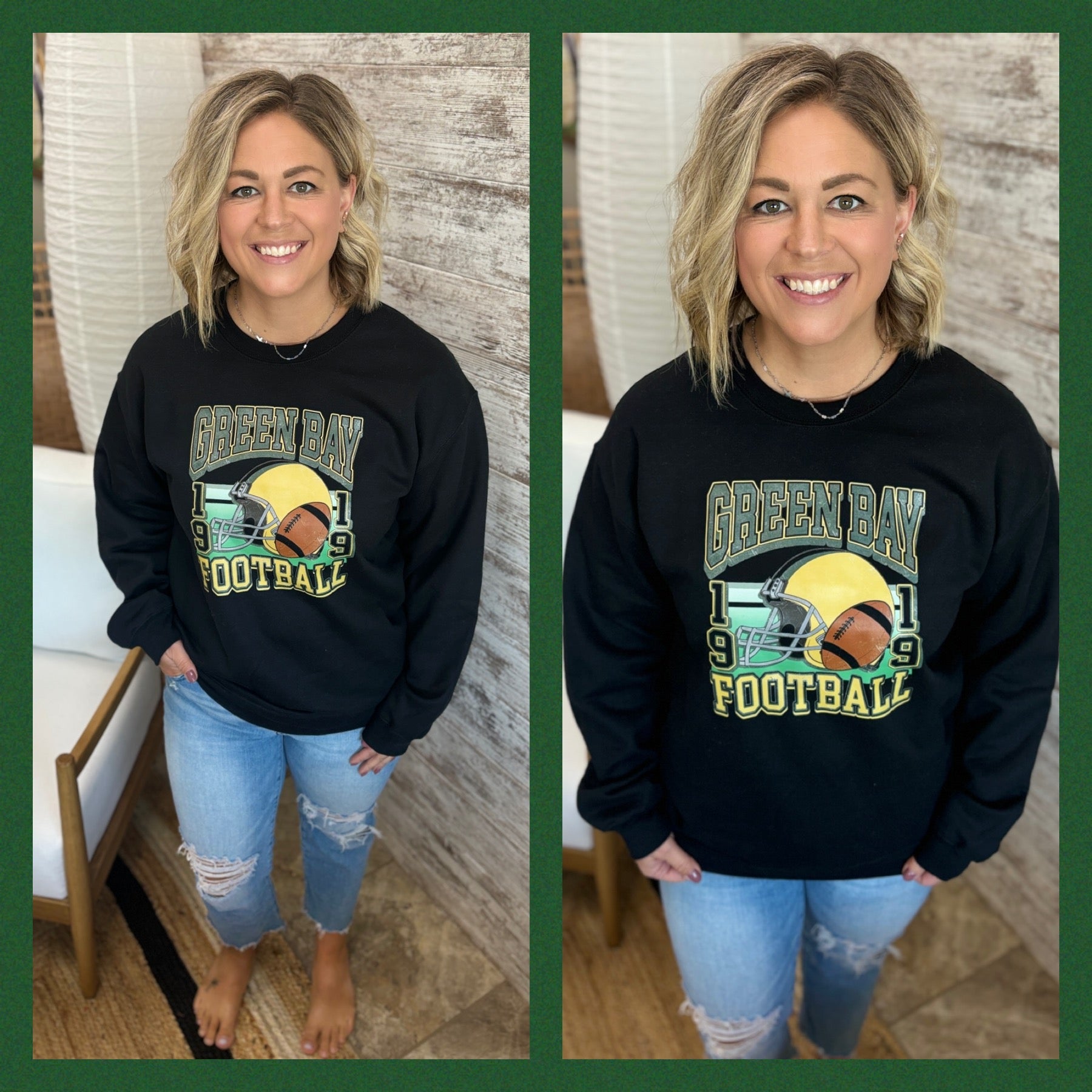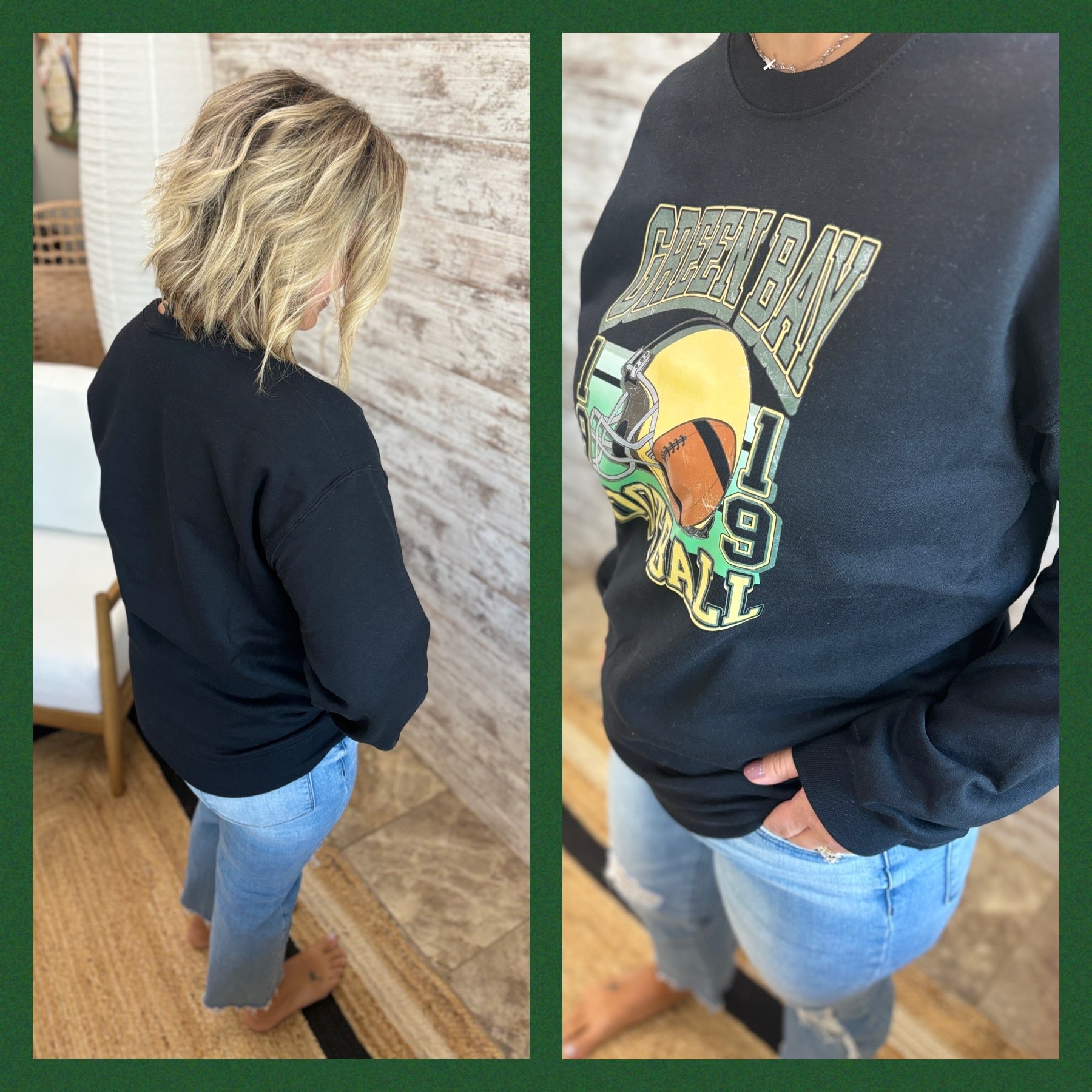 Green Bay Football Retro Black Gildan Crew