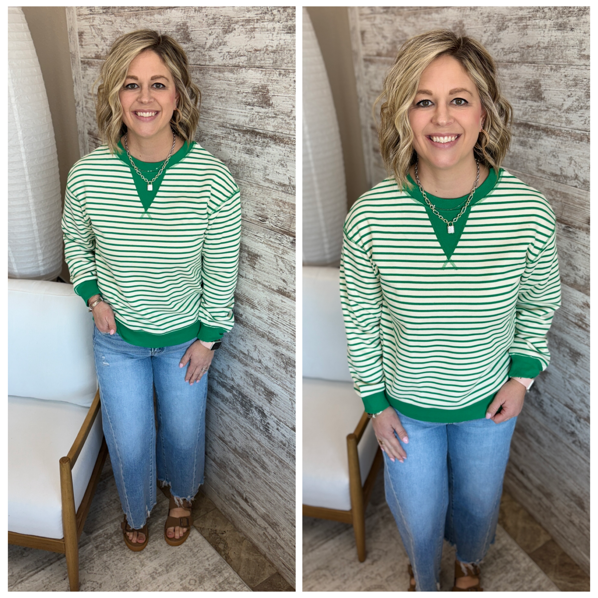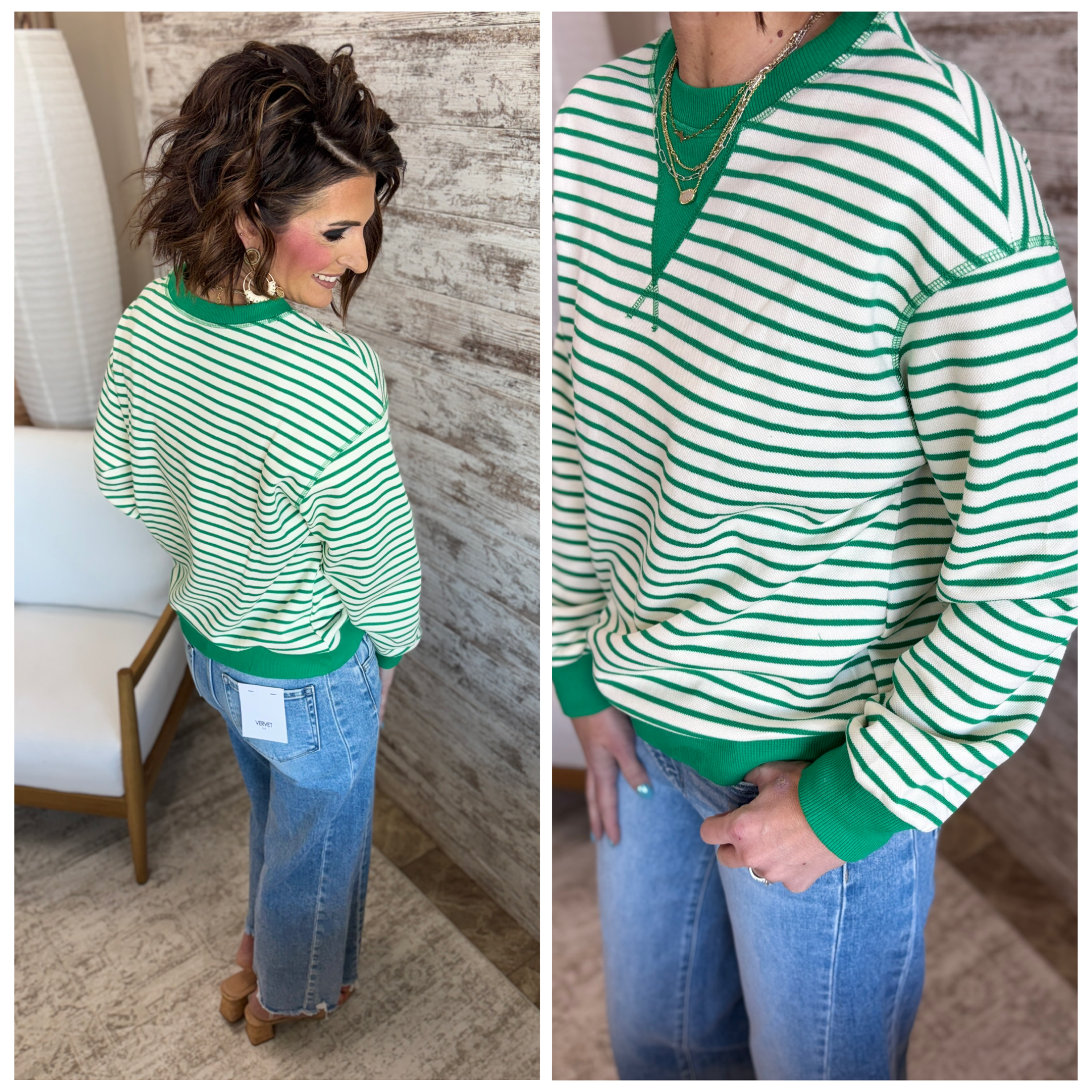 Green Striped Exposed Seam Pullover