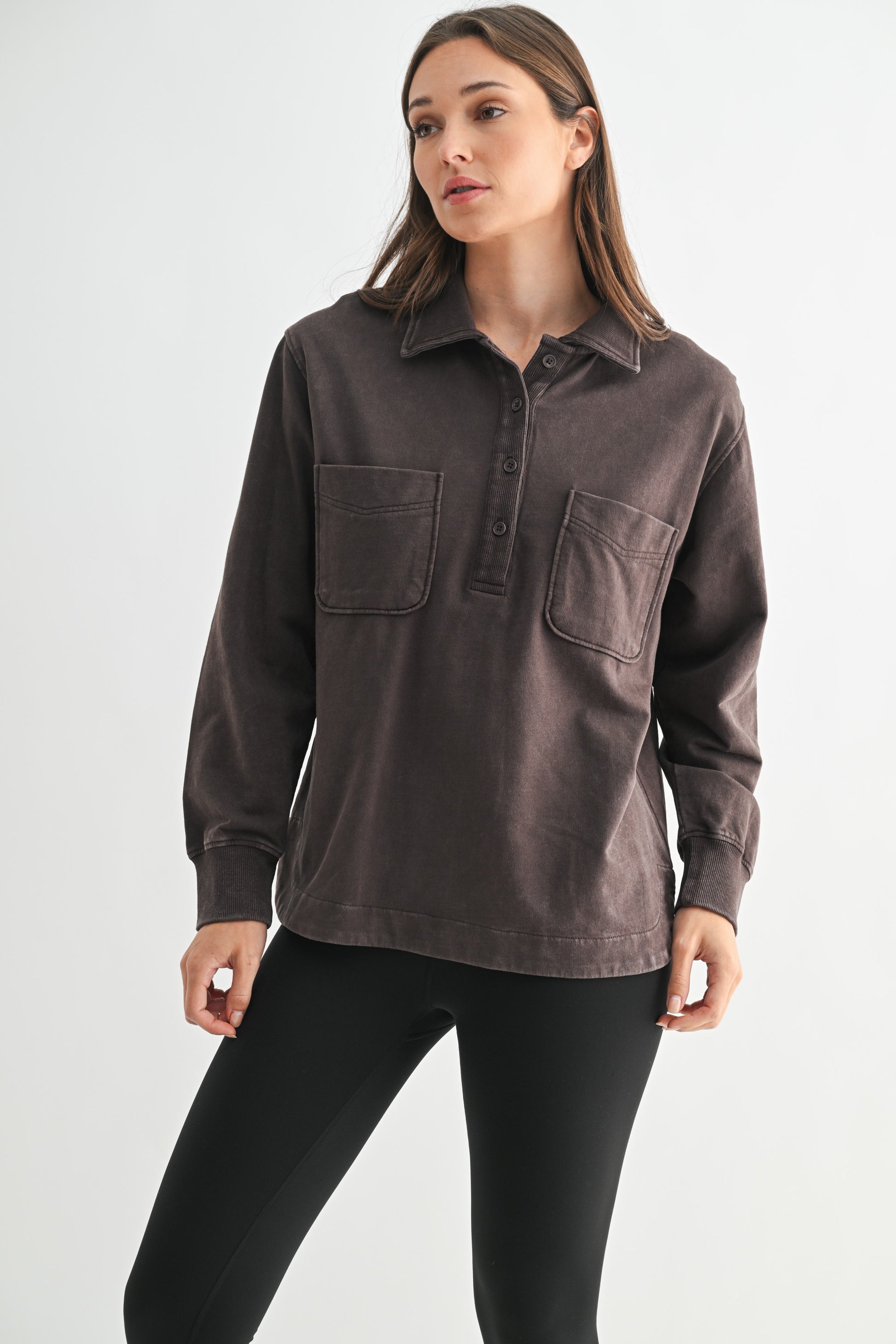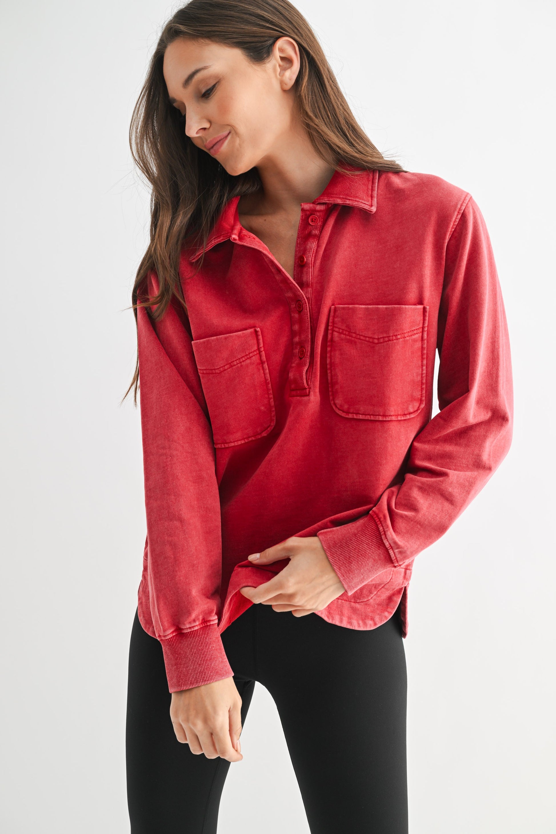 Half Button Mineral Wash Color Shirt ~ 2 Colors