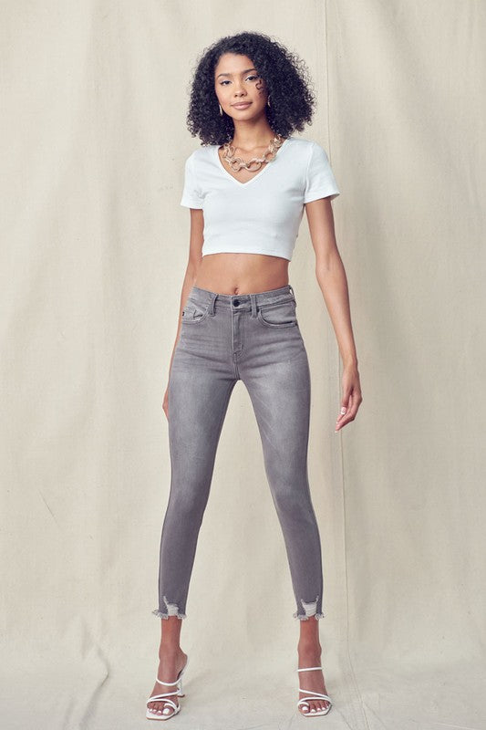 High Rise Hem Detail Ankle Skinny - KC9216LG