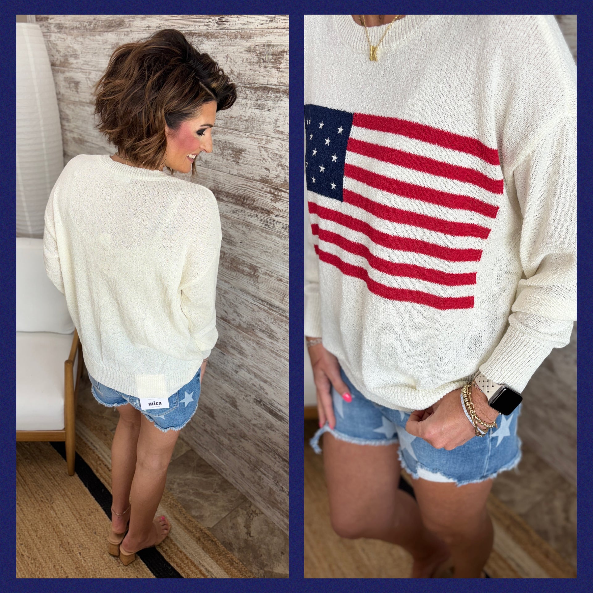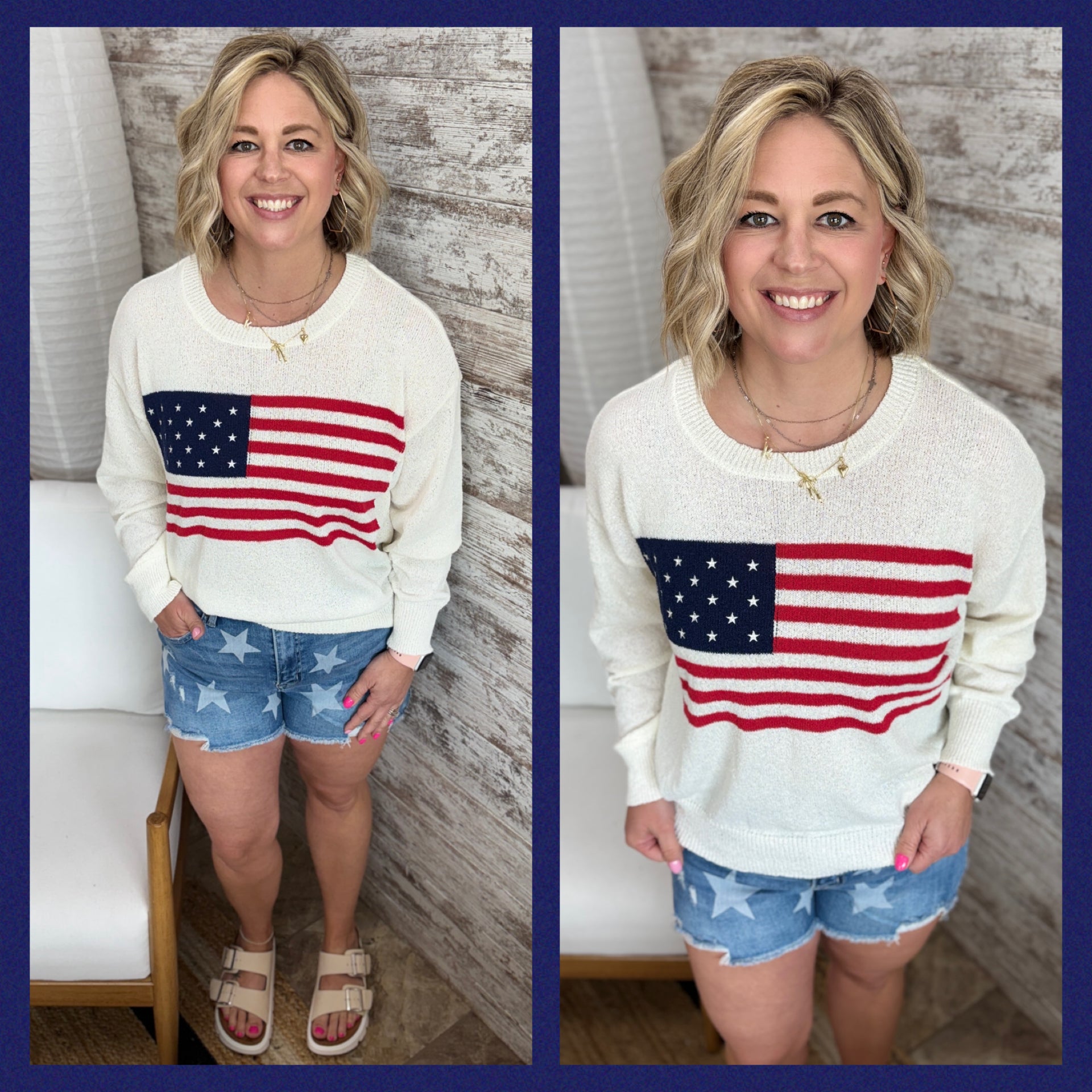 The American flag knit sweater pullover is a bold and patriotic wardrobe