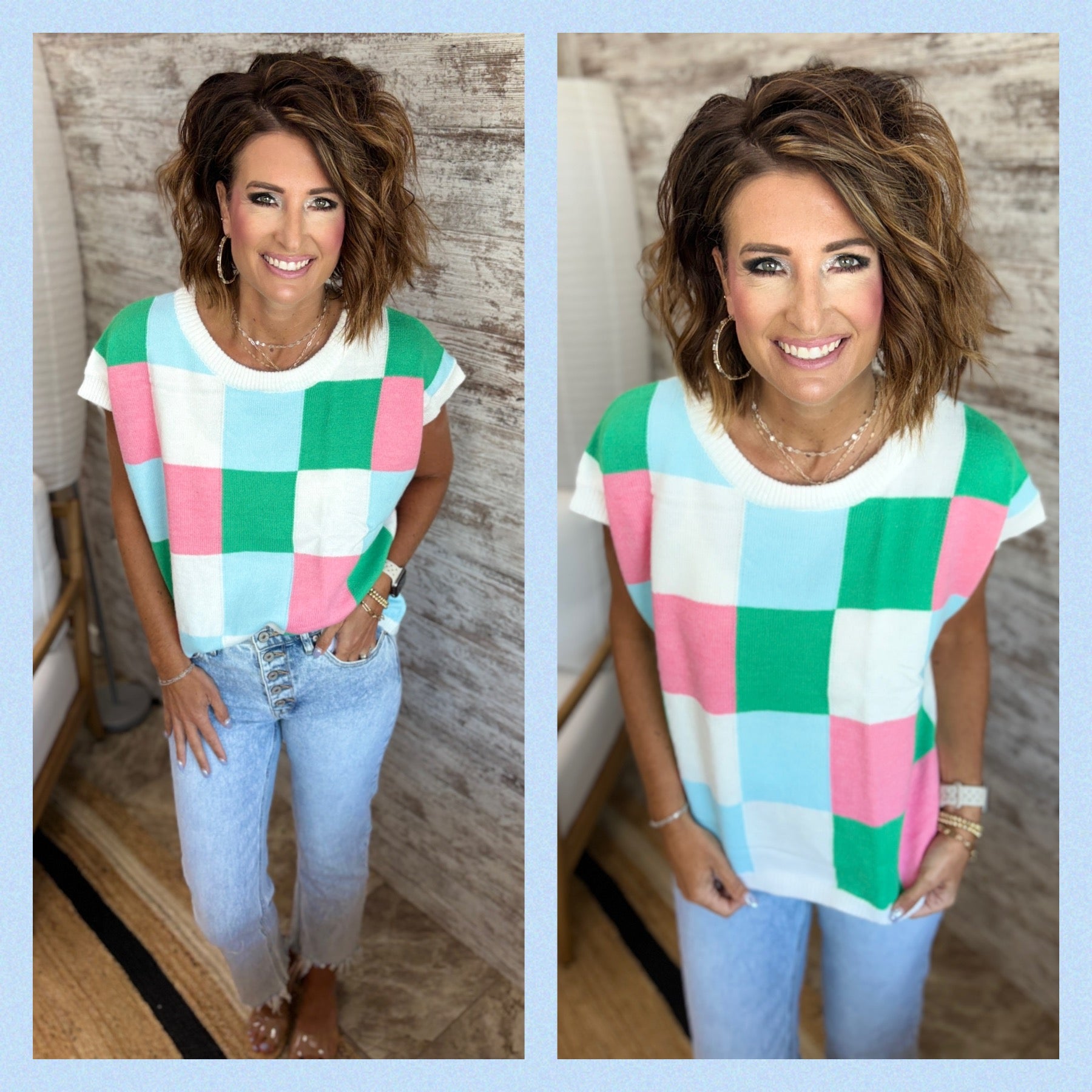 Jade/Pink/Denim Multi check Sweater