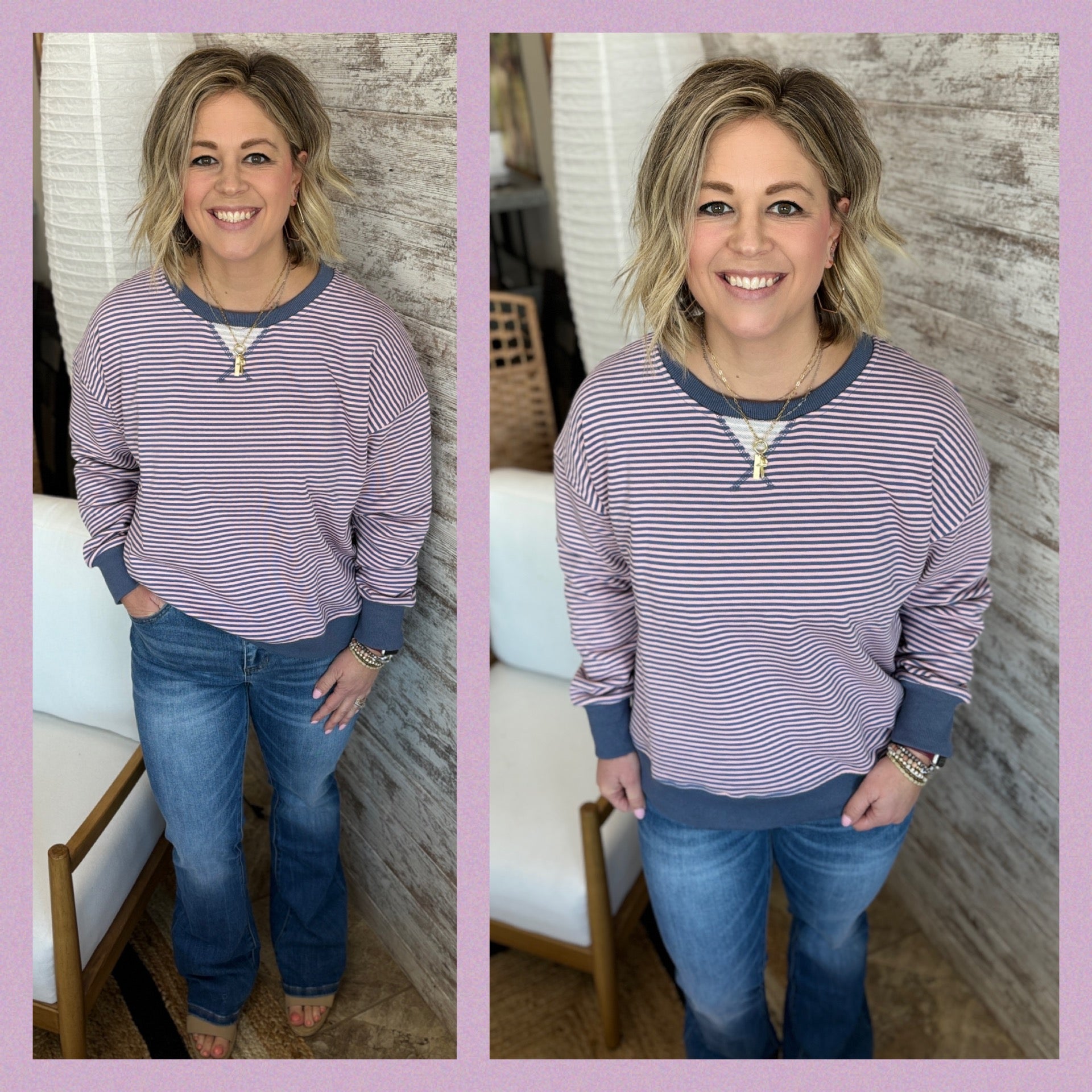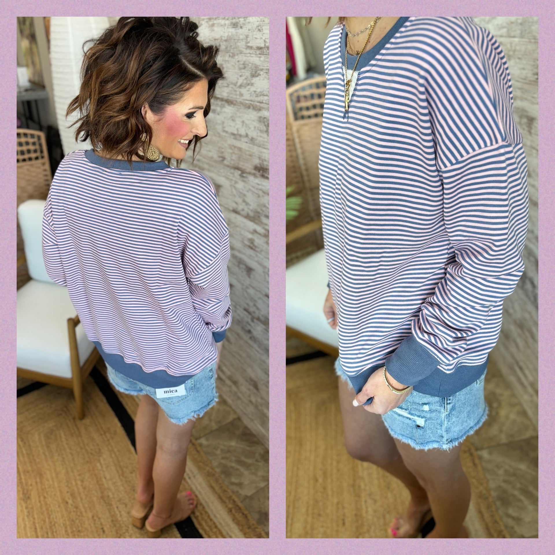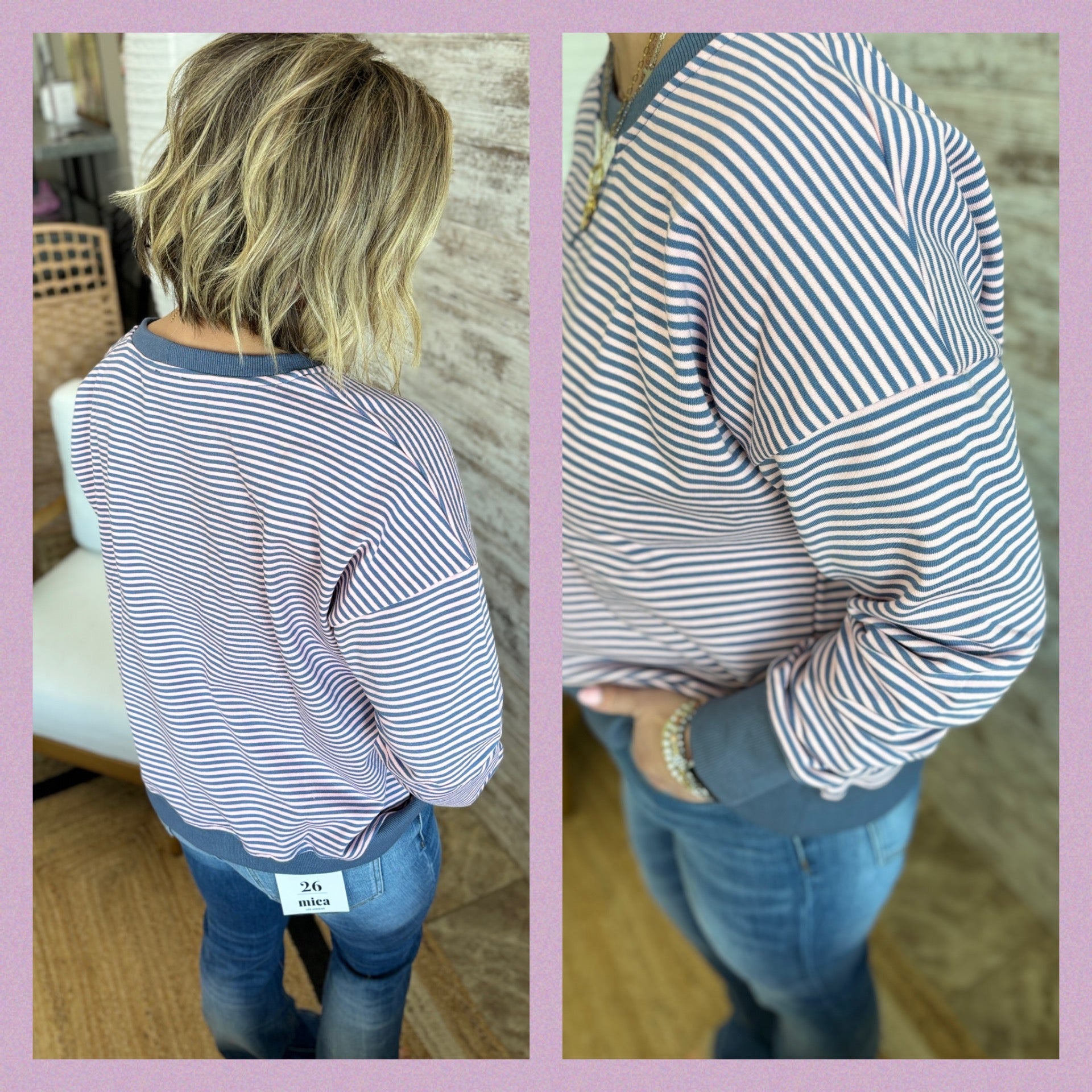 MINI STRIPE MULTI COLOR MIXED OVERSIZED SWEATSHIRT -60% COTTON 40% POLYESTER