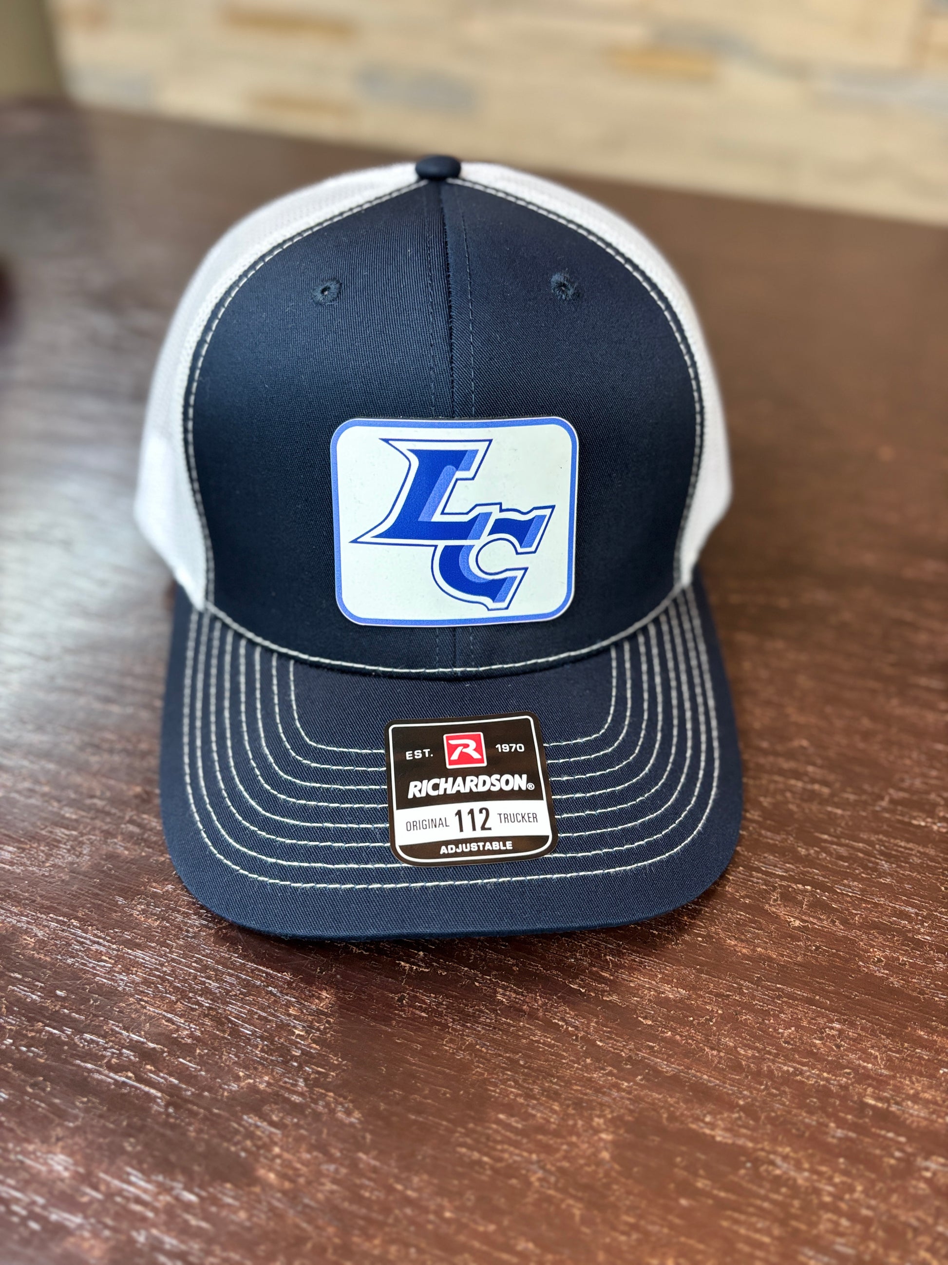 Navy and White Richardson Trucker Hat with a new colored patch with LC!