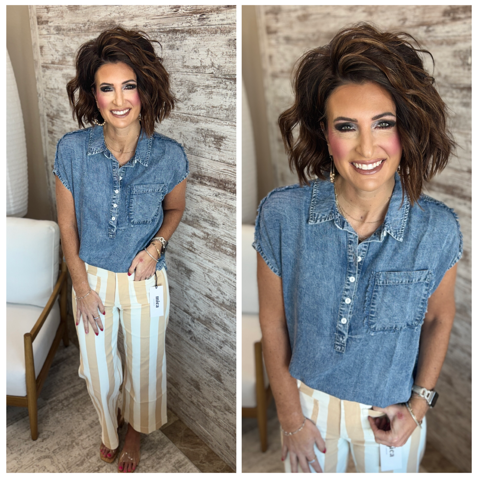 Denim Short Sleeve Henley Top