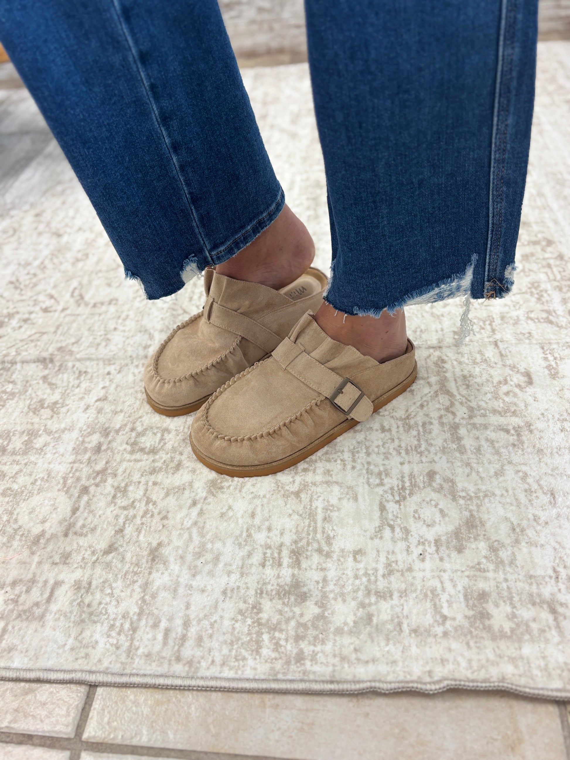 Relaxed comfort meets artisan detail in the JOIA Suede Moc Clog. Designed with a moccasin-inspired silhouette, this slip-on features soft gathered suede, tonal stitching, and a bold buckle strap for a touch of edge. A cushioned insole and flexible sole make JOIA perfect for all-day wear, offering the ease of a clog with the crafted look of a Moc. Whether paired with wide-leg trousers, casual denim, or cozy knits, JOIA brings effortless charm to your everyday style.