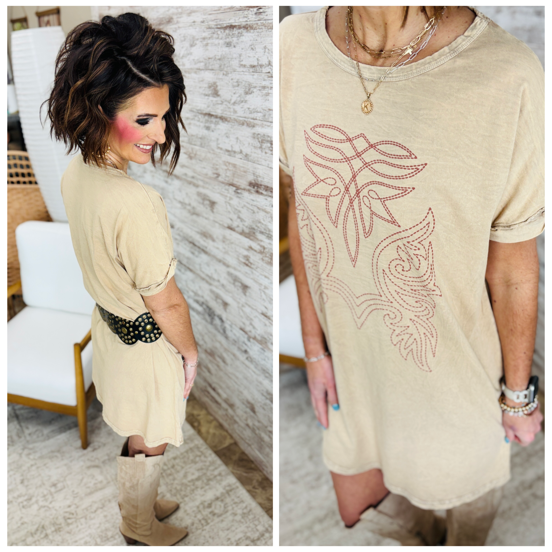 Mineral Taupe Graphic T Shirt Dress