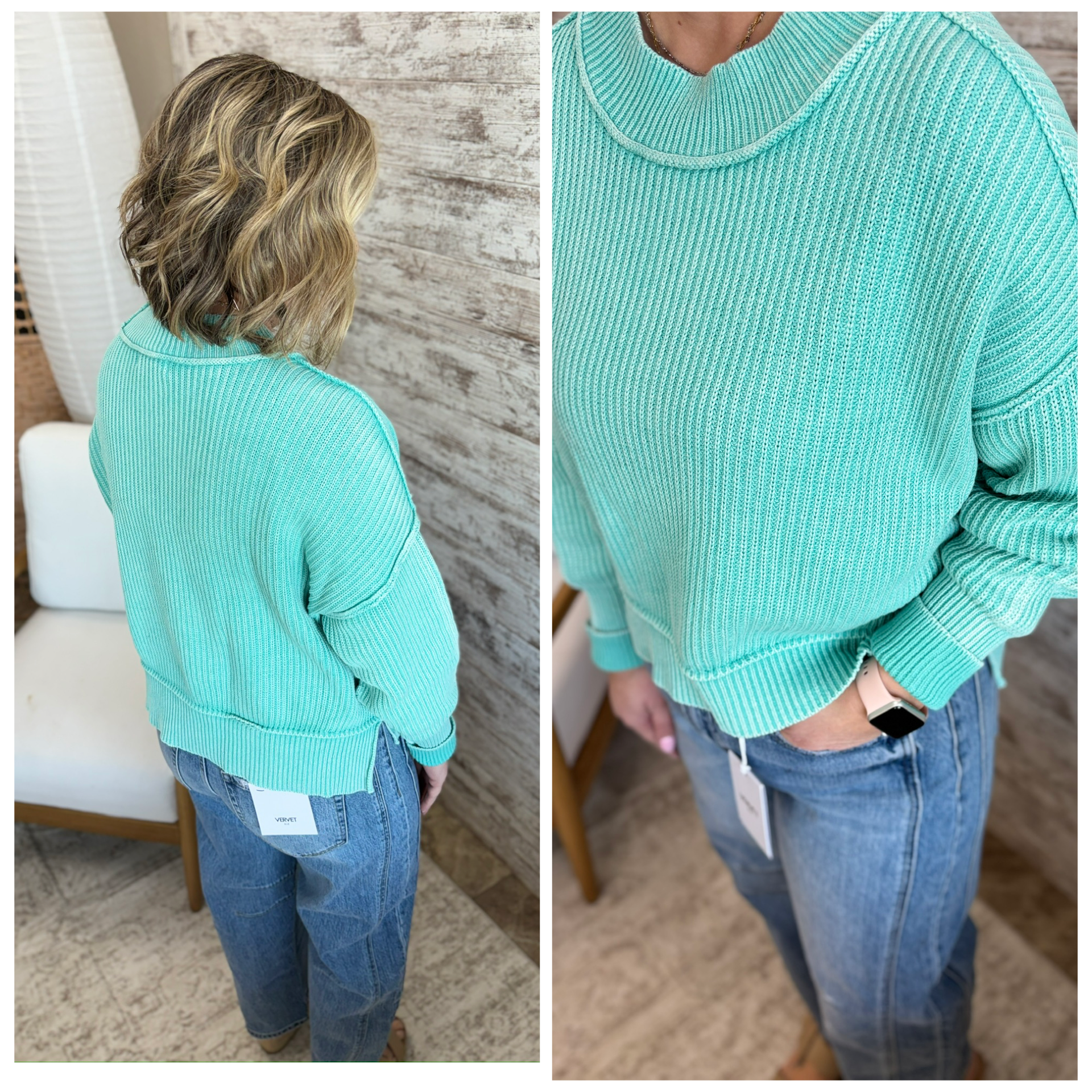 Mint Oversized Side Slit Sweater