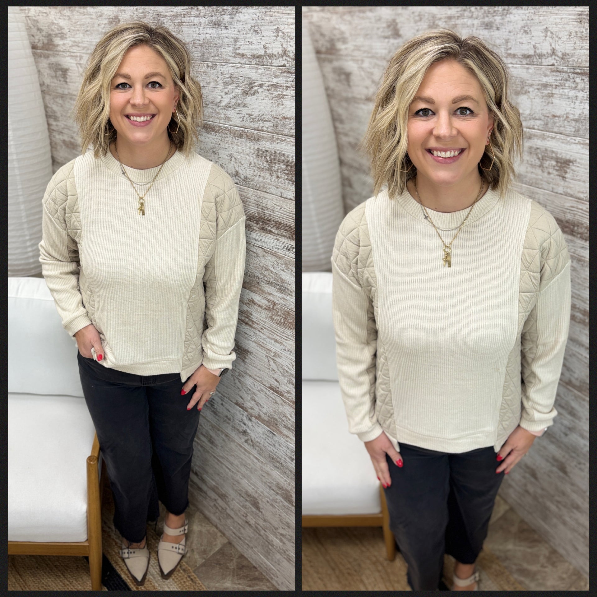 MIXED FABRIC CREW NECK OVERSIZED TOP -50% RAYON 25% POLYESTER 20% NYLON 5% SPANDEX