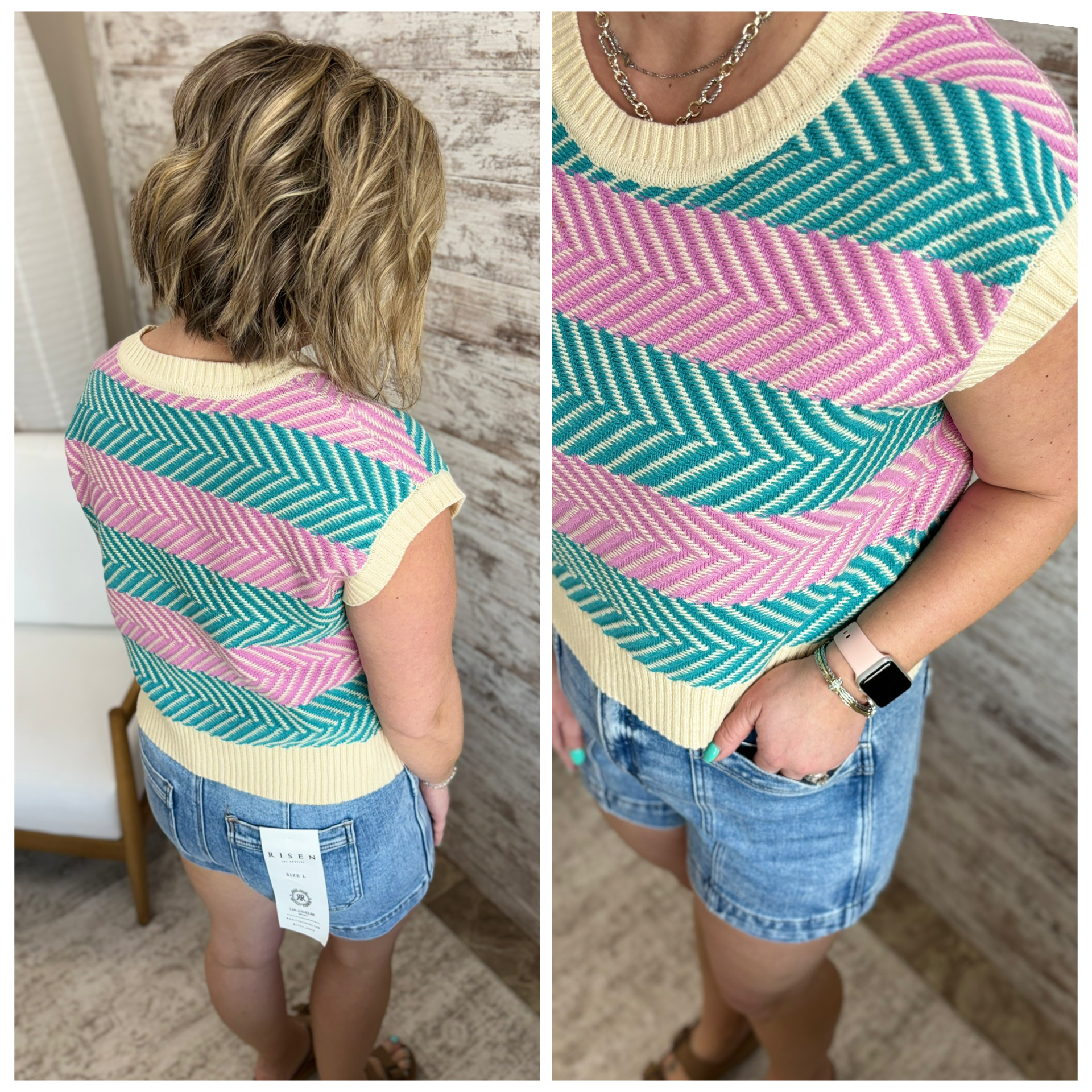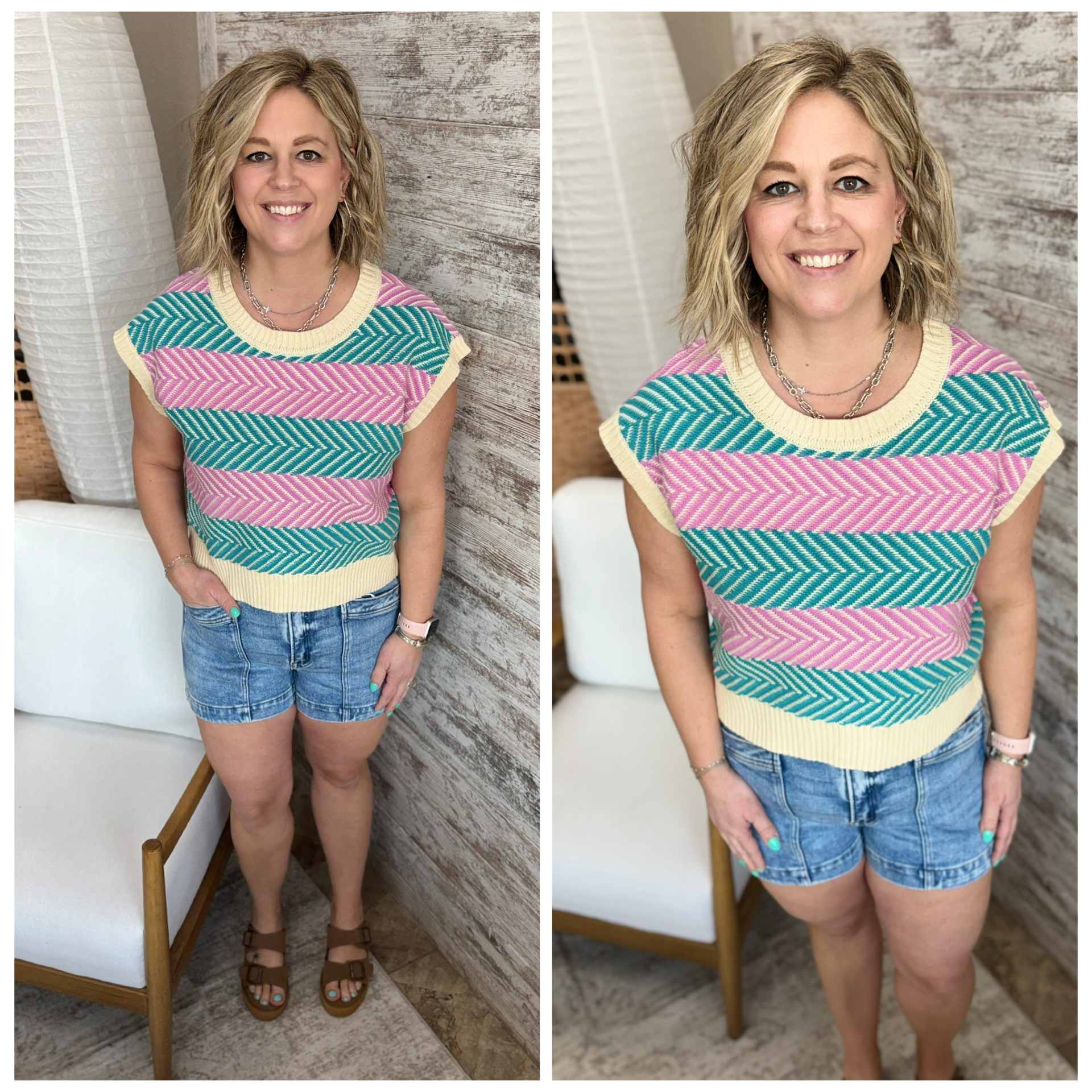 Orchid/Teal Chevron Boxy Sweater Top