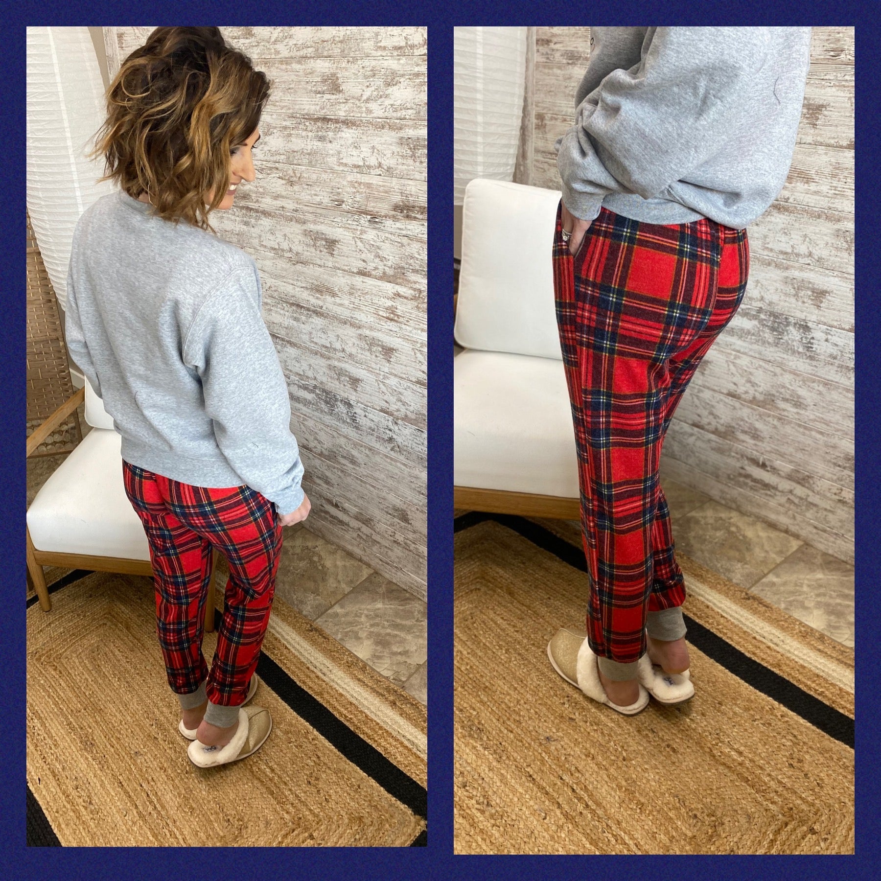 PLAID PRINT JOGGER PANTS WITH SIDE POCKET