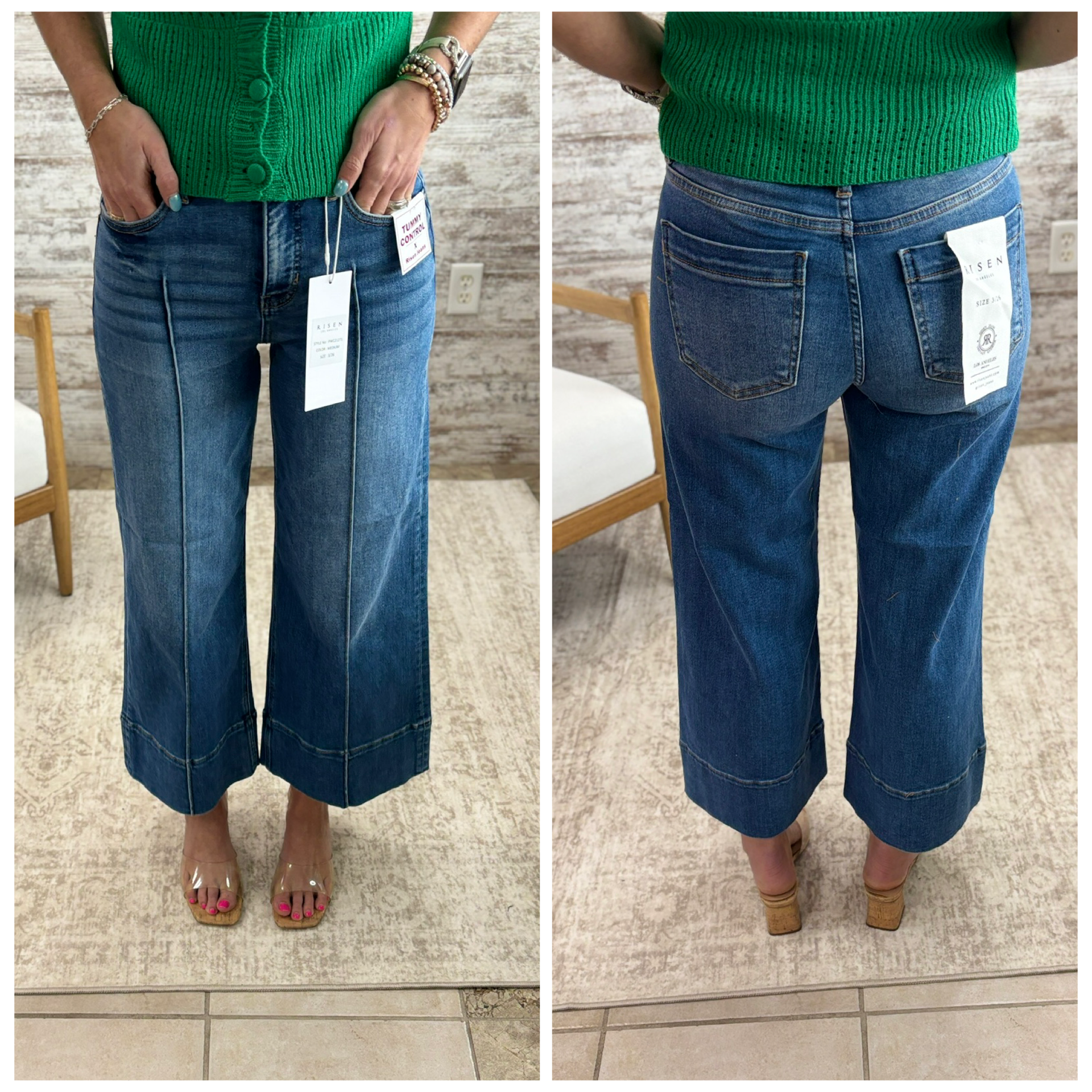TUMMY CONTROL MID RISE CROP WIDE PINTUCK FRONT JEANS