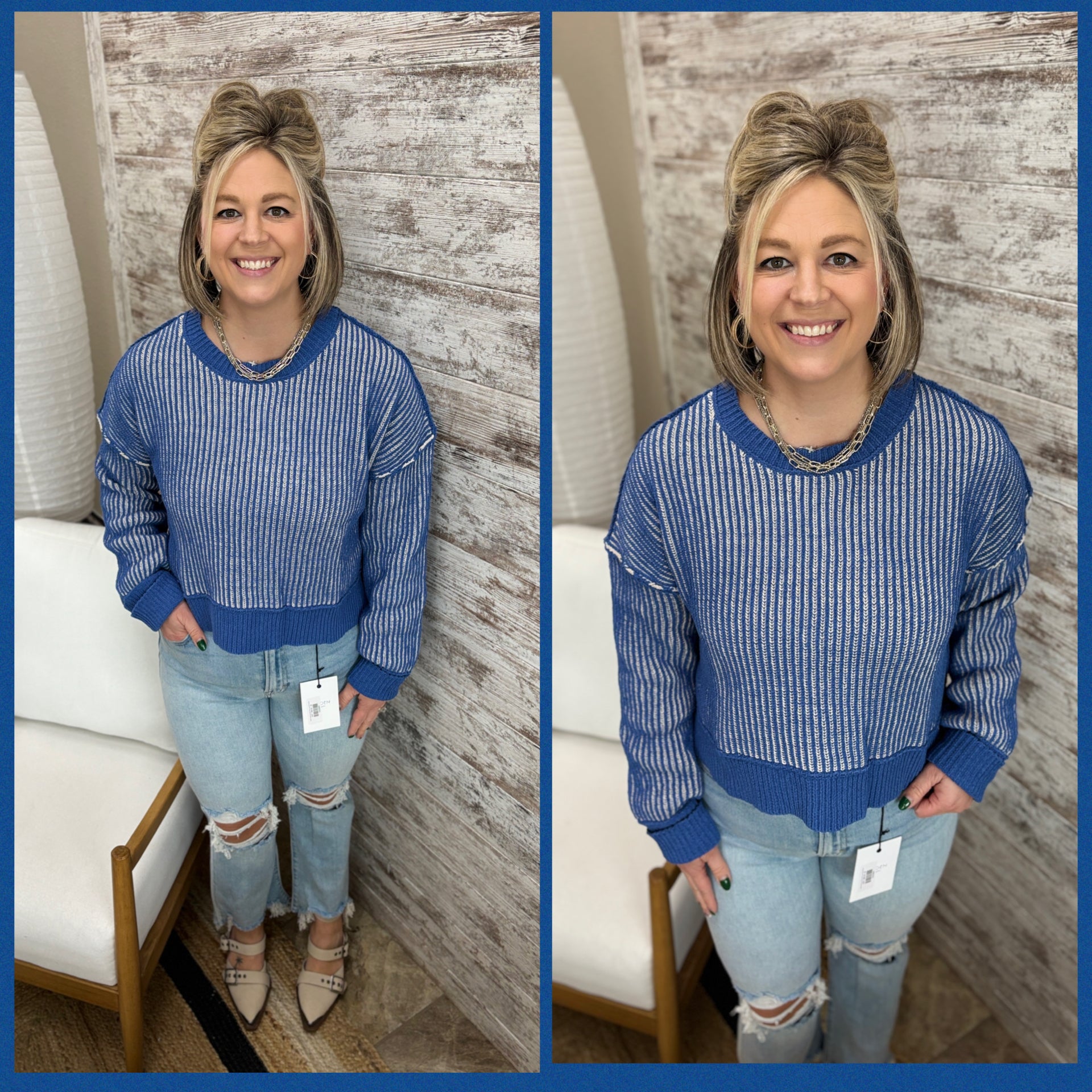 Royal Blue Two Tone Stripe Sweater
