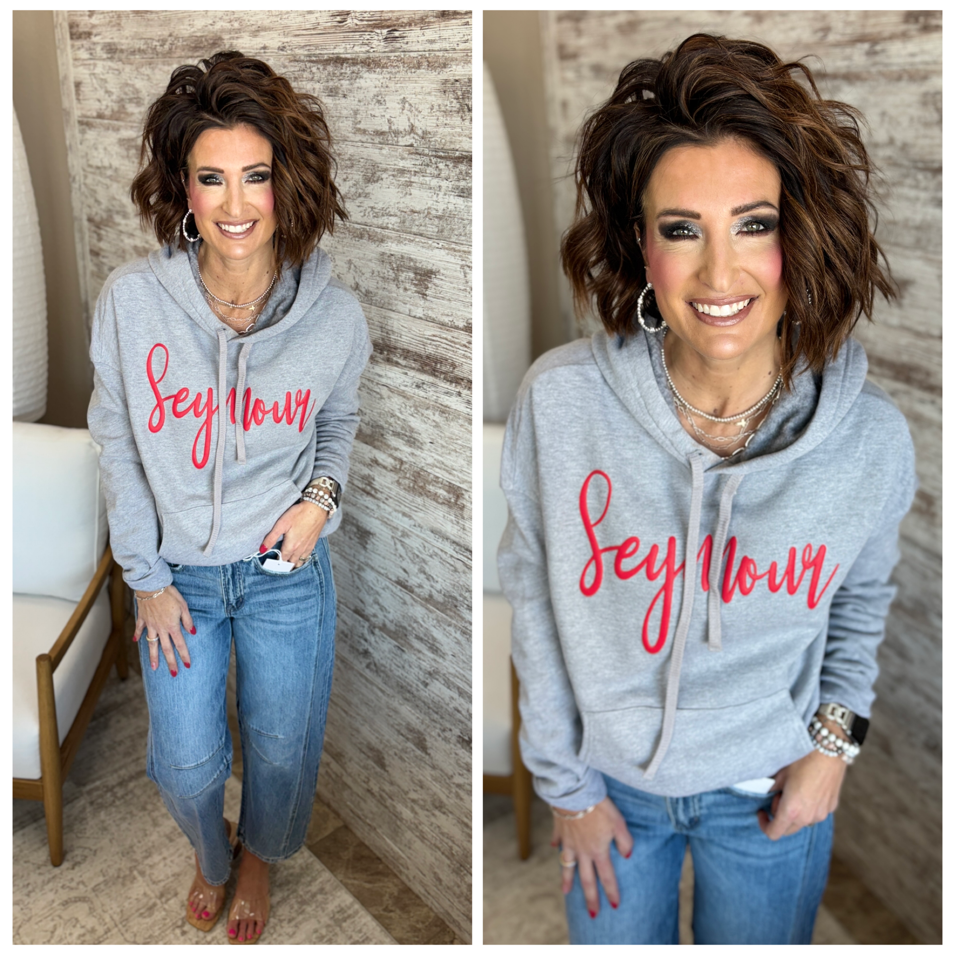 Seymour Cursive Puff Print Bella Canvas Heather Sponge Grey Hoodie