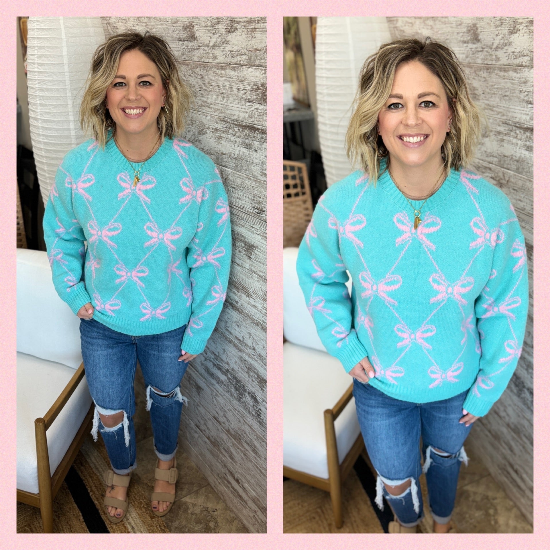 Teal Pink Ribbon Knit Sweater