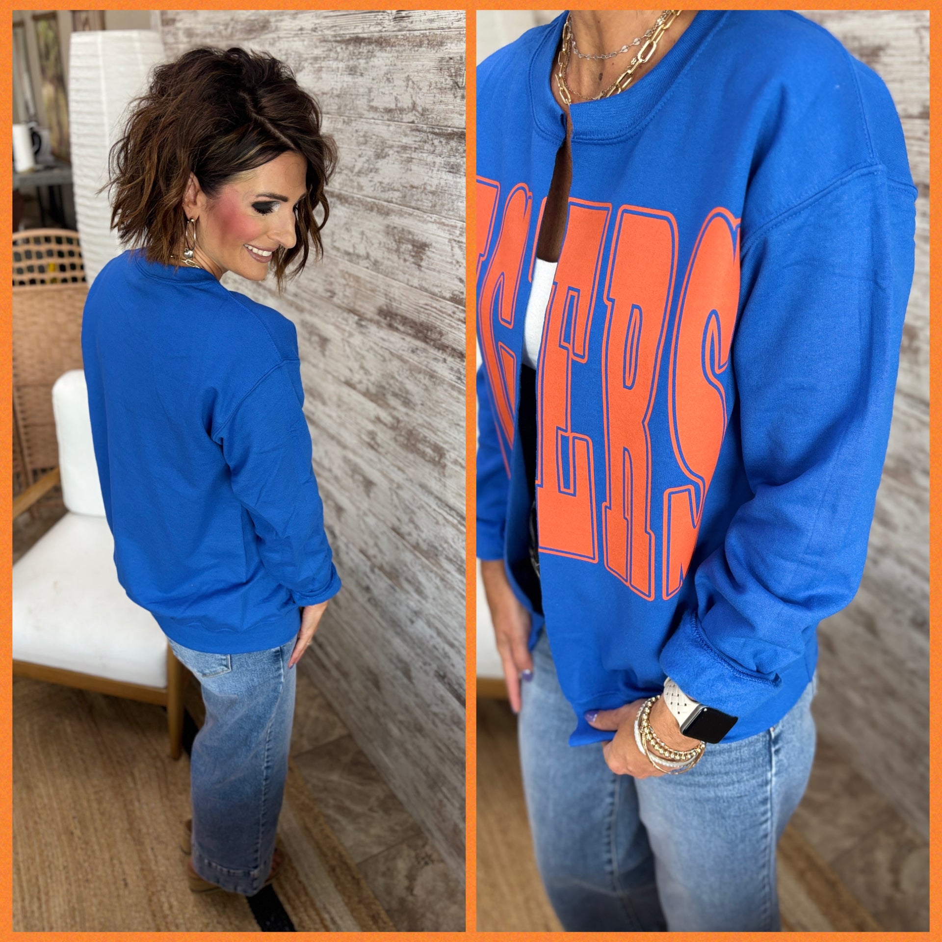 Show your team spirit in cozy style with the Hand Cut Sweatshirt Cardigan. Made from soft fabric, it offers a relaxed fit. The hand-cut design adds a unique, laid-back vibe that’s as comfortable as Fall itself.
