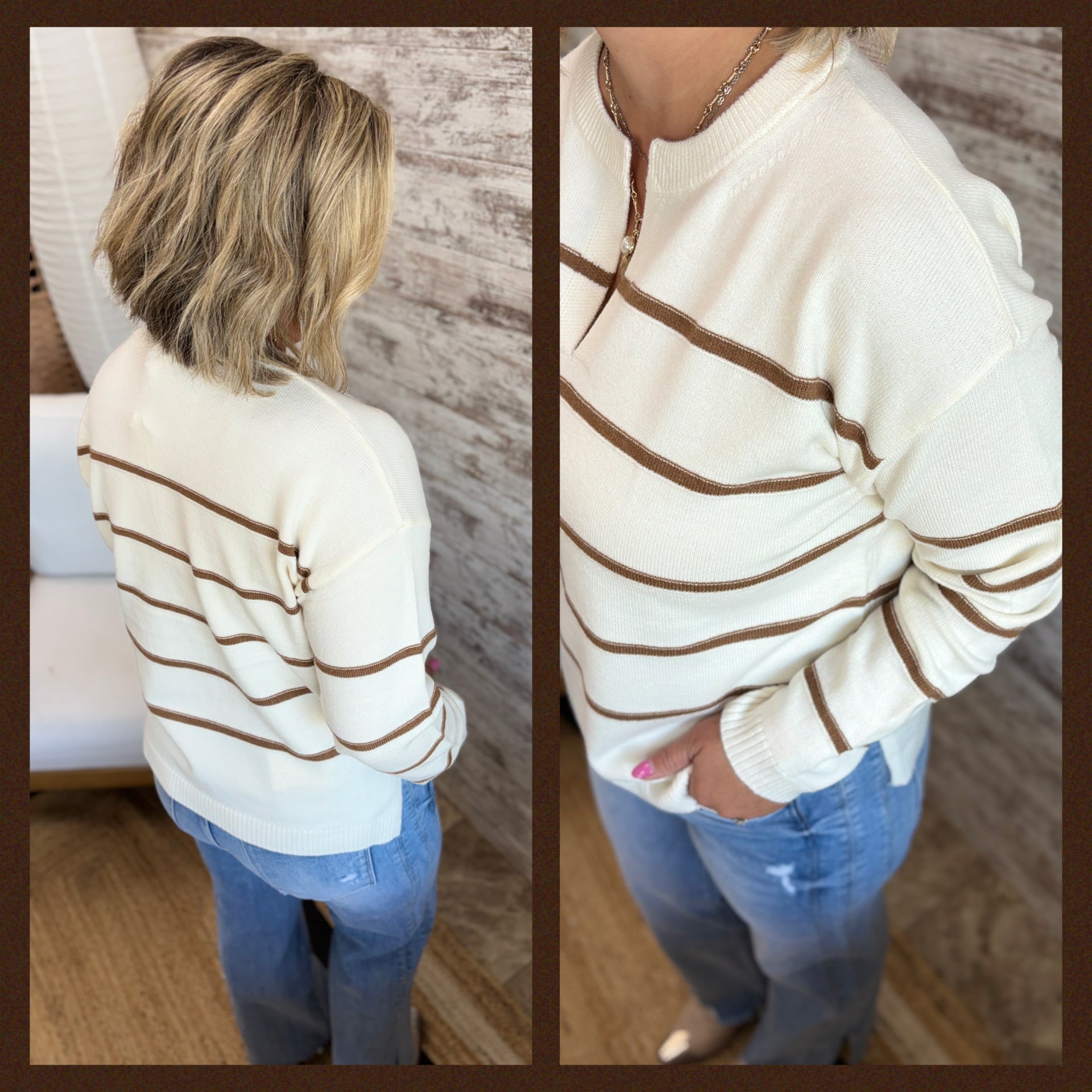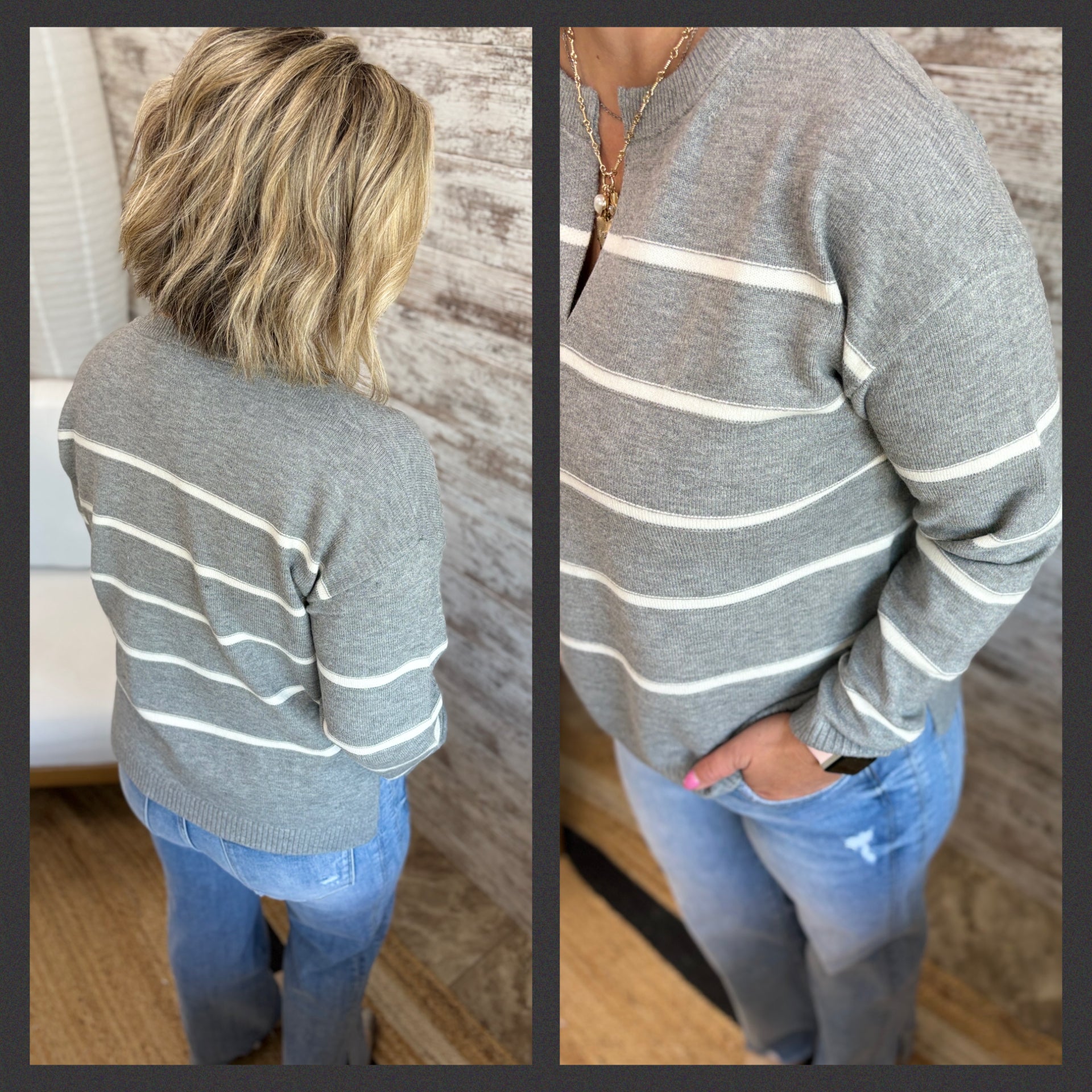 STRIPE V-NECK SWEATER KNIT TOP -70% POLYESTER 20% ACRYLIC 10% NYLON