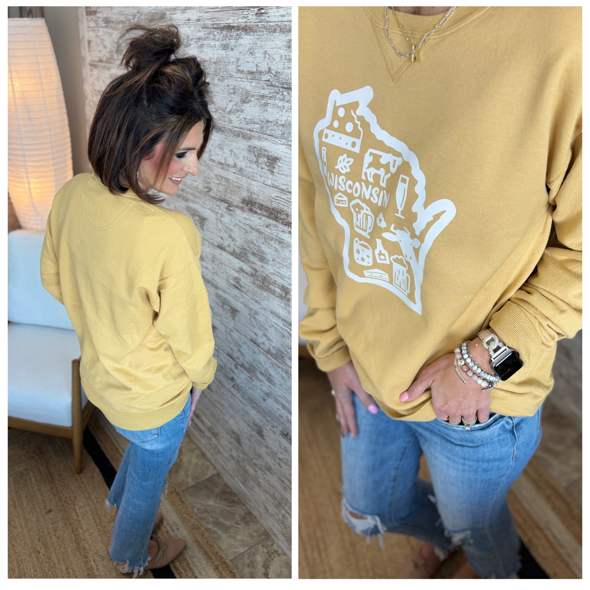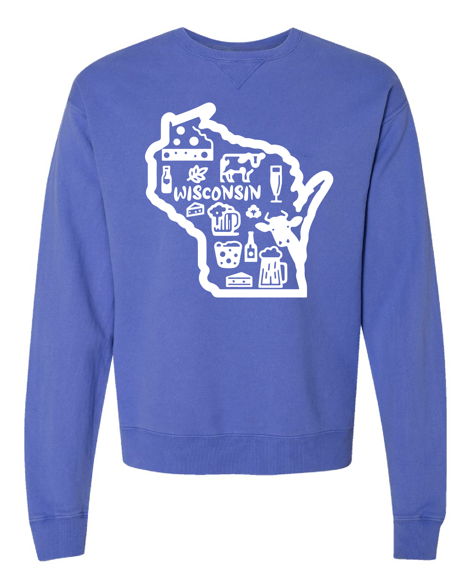 Wisconsin State Comfort Wash Crew ~ 4 Colors